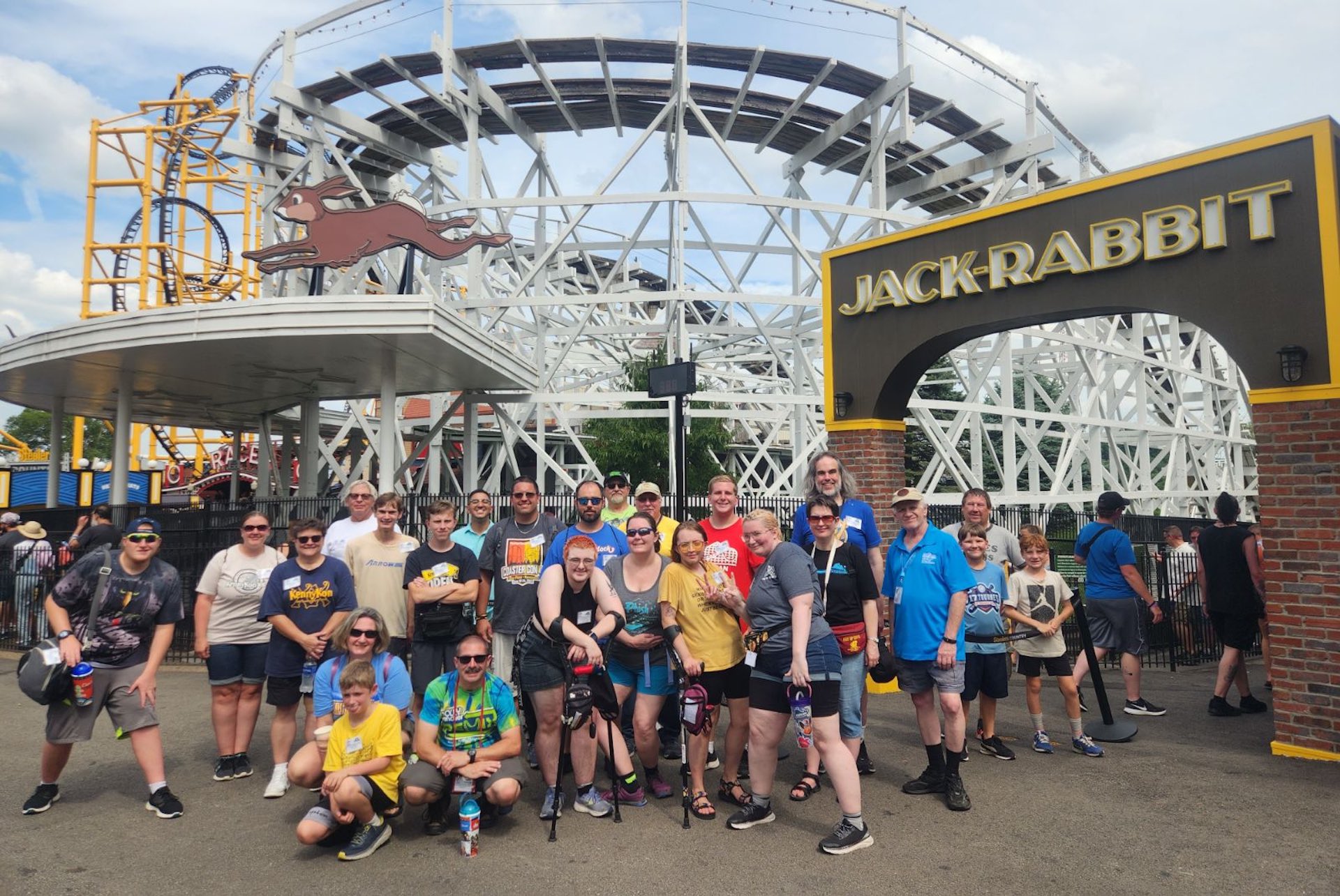 It’s the middle of July in the middle of summer, and it’s hot and humid, with a threat of rain. What does that mean? It’s time for KennyKon, ACE Western Pennsylvania’s flagship event, celebrating its 34th year in 2023. On July 15, 257 ACEers and their guests from 15 states, Canada and the District of Columbia checked in at Kennywood in West Mifflin, Pennsylvania, to help the park celebrate its 125th anniversary and to have some fun. Some surprises were in store for attendees during check-in. In addition to the usual name badges, schedules and tickets, attendees could pick up a KennyKon Bingo card with blocks that specified characteristics of people they should look for (e.g., had been on an ACE European trip, had ridden coaster in Asia, was attending their first ACE event, had attended at least five KennyKons). It was a fun and easy way to meet new people! On top of all that, Kennywood surprised everyone with a free ticket to Sandcastle Waterpark in West Homestead to be used any time during the 2023 season.