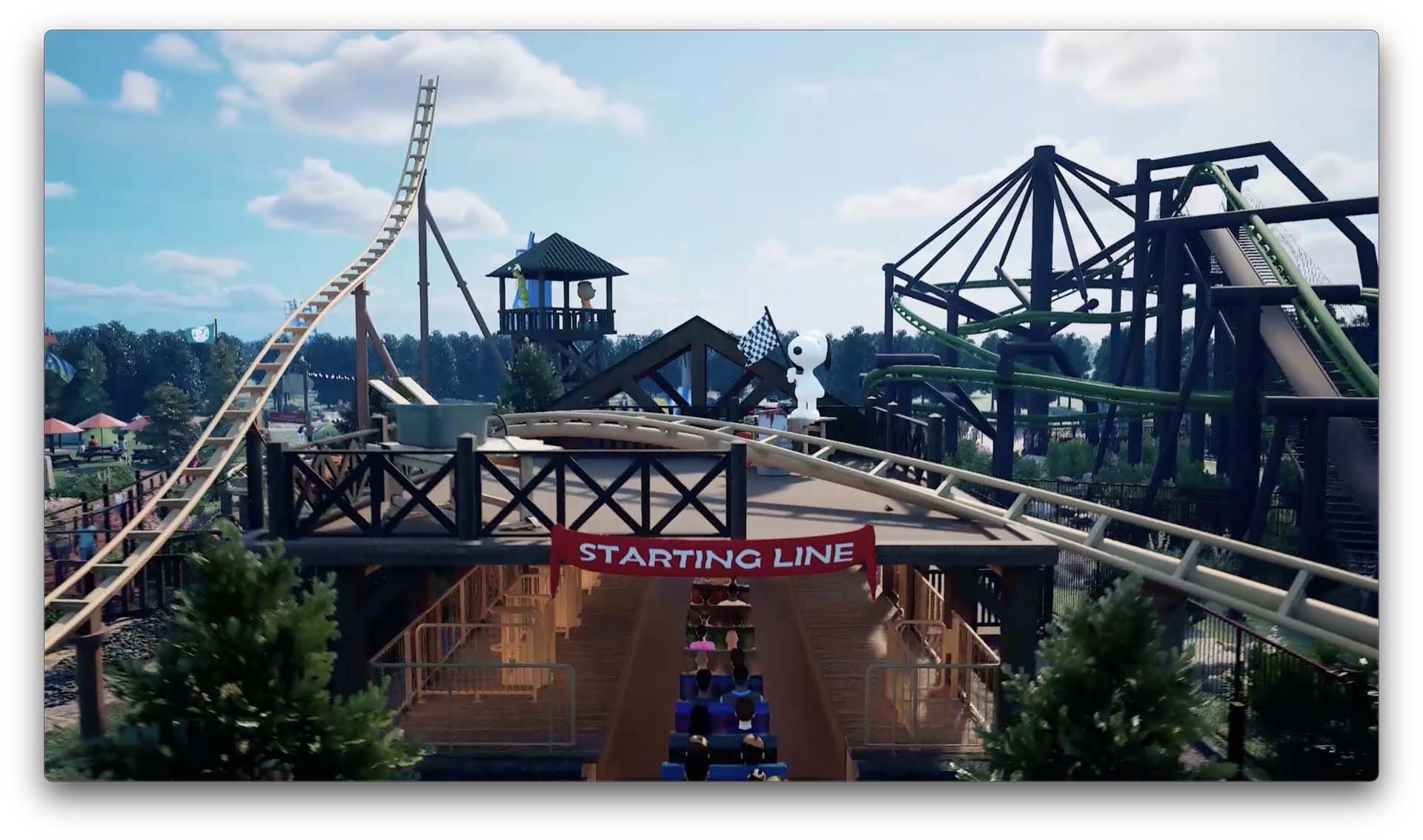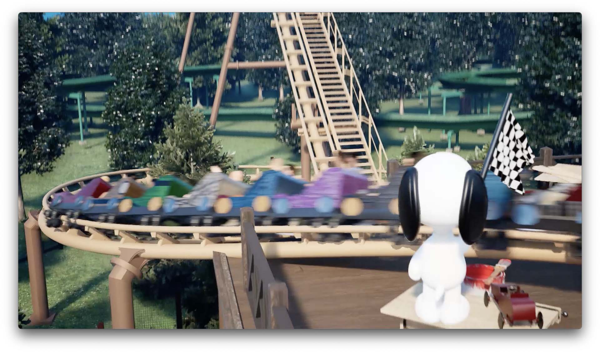 Snoopy’s Soap Box Racers will join other roller coasters in the Planet Snoopy section of the park, including Flying Ace Aerial Chase — another Vekoma product.