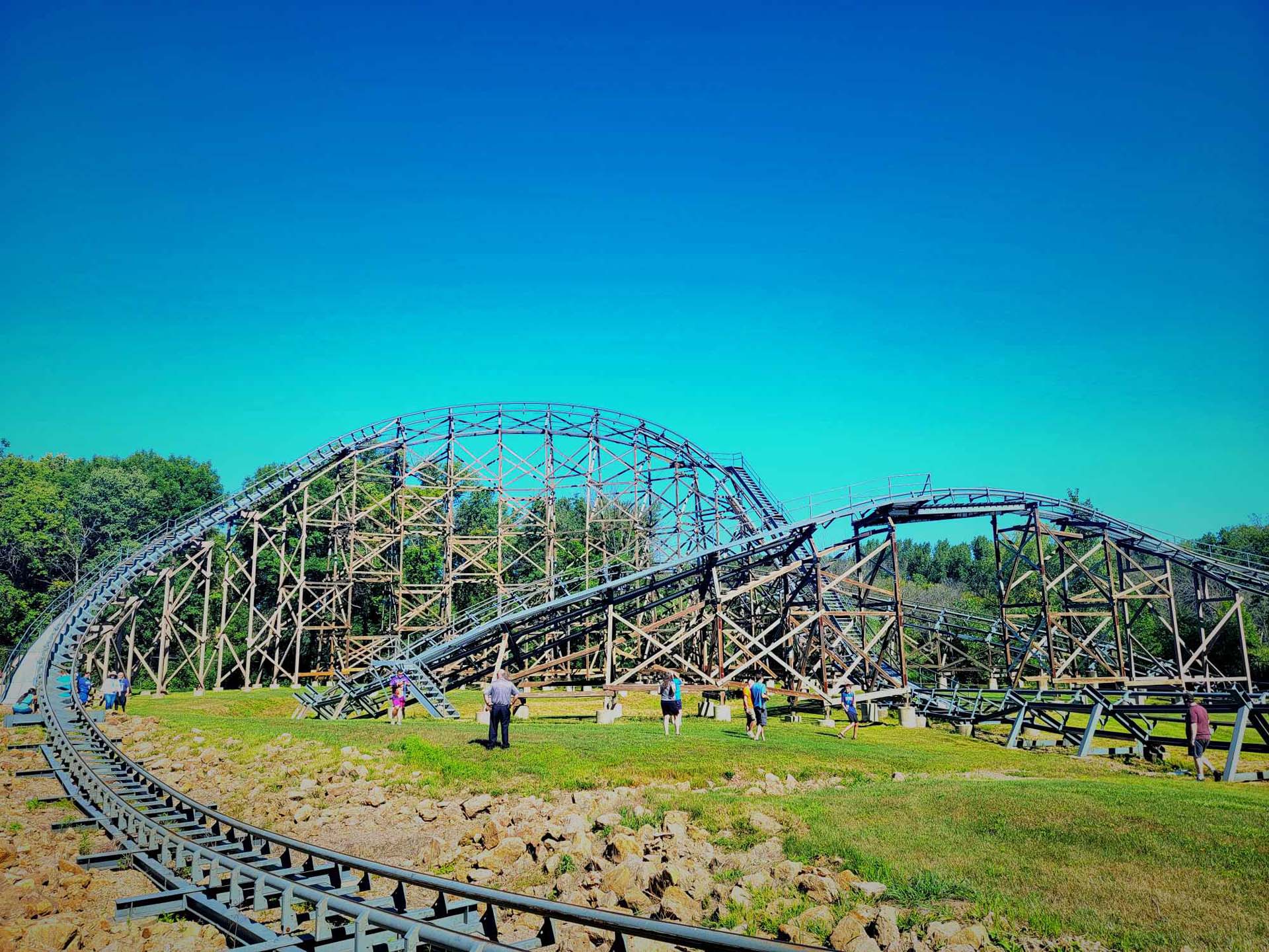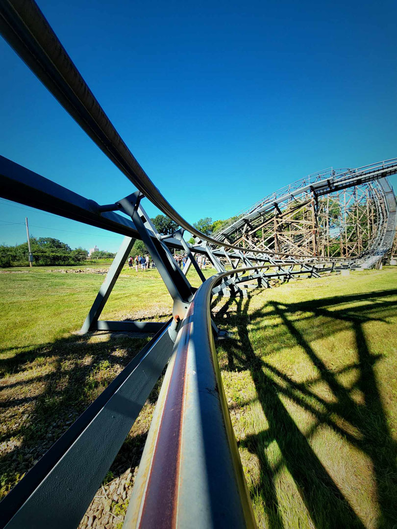 Some may remember the speed pop at the bottom of the first hill, which Valleyfair explained needed to be removed owing to its intensity. Soul and Boone also explained how some of the high-impact areas needed to be converted to all steel over the years because the forces of the ride kept tearing apart the structure. The question was asked why the coaster wasn’t constructed of all wood or all steel, and the answer was simple: people love the look of a wood roller coaster, but the need for steel was important to get the best ride.