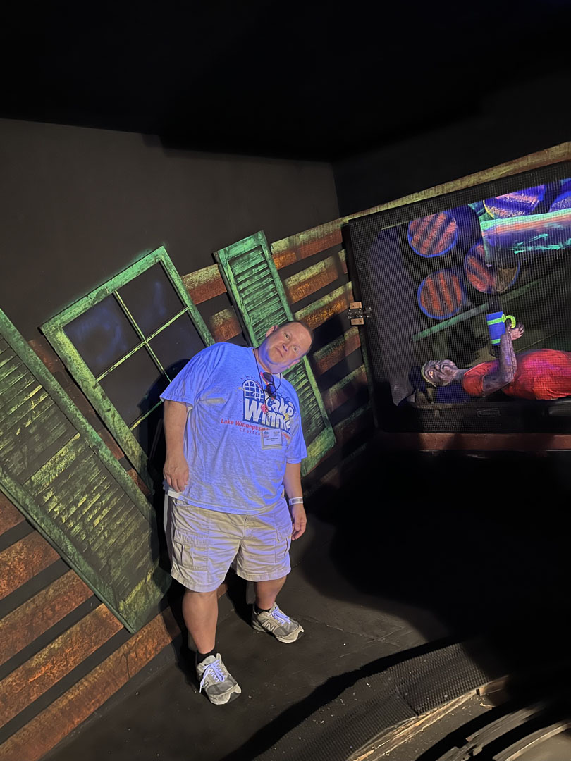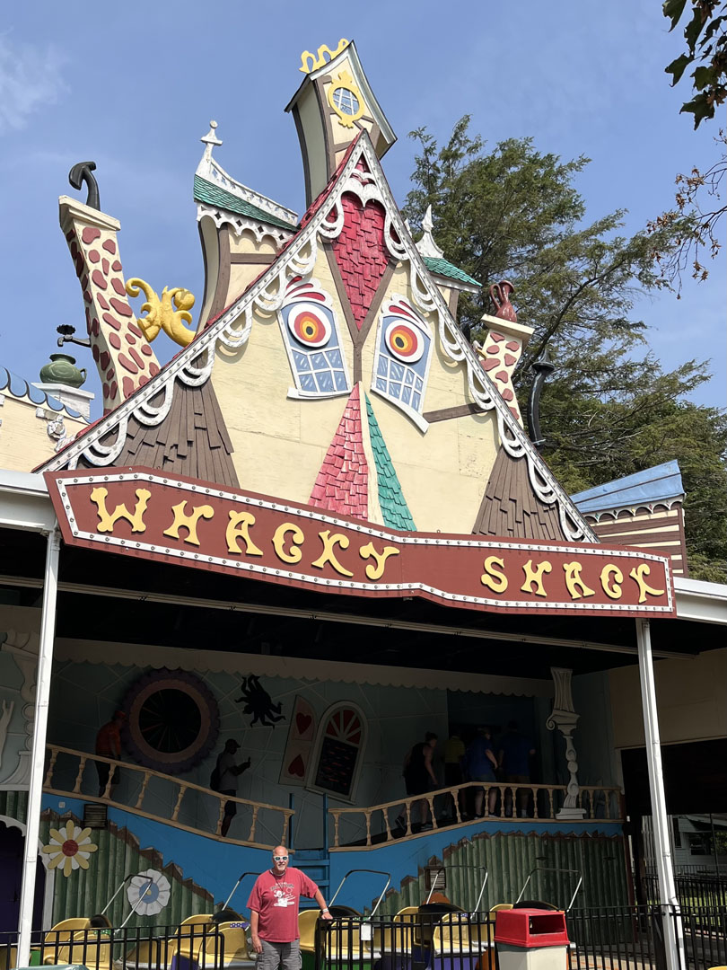 After registration ended at 10:30 a.m., there was a behind-the-scenes experience at Whacky Shack, the Bill Tracy-designed dark ride that is celebrating 53 years at the park. Led by Whacky Shack’s ride operator and restorer, Randy Skalos, attendees could walk through the attraction with the lights on.