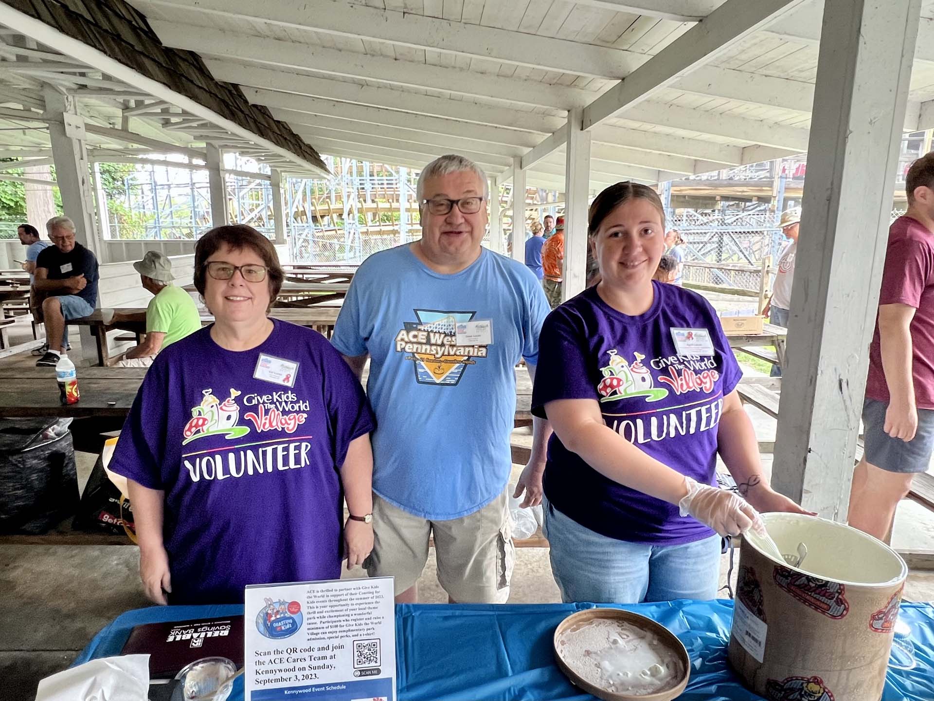 First, everyone had to check in at the Lakeview Picnic Grove to get their name tags, schedules and wristbands. Waldameer thoughtfully provided coffee and doughnuts for attendees and generously donated ice cream so ACE could serve Ice Cream for Breakfast. Thus, for a donation, attendees could begin their day with a tasty bowl of ice cream that benefitted not only them but Give Kids The World (GKTW). 2023 is the ninth year ACE Western Pennsylvania has raised money for GKTW Village in Orlando, Florida, where children with life-threatening illnesses and their families can enjoy a week of fun and relaxation at the Orlando parks. This year their efforts raised $280, which is the third highest total to date.