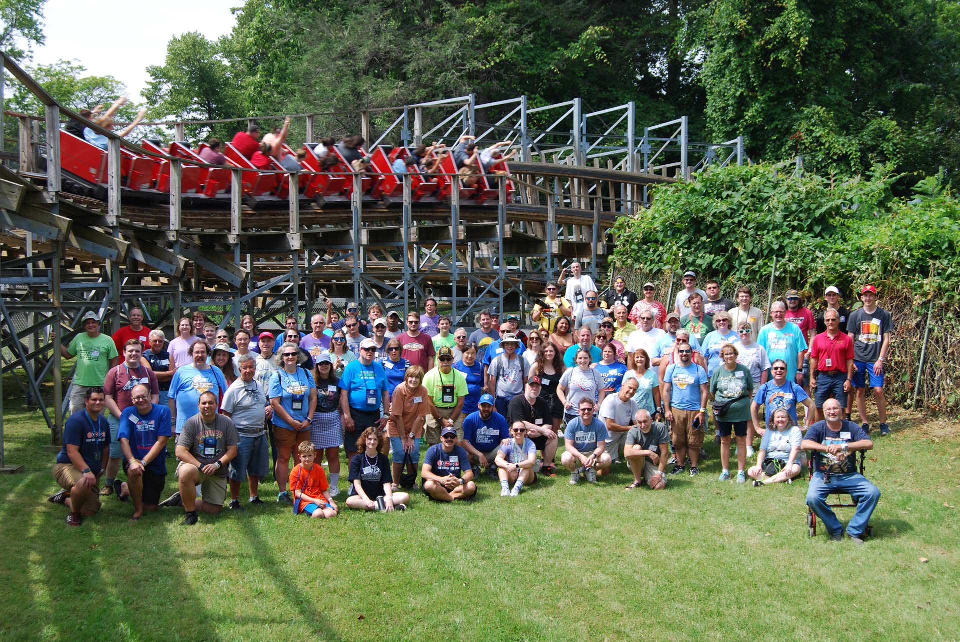 It’s hard to imagine a more fun place to be on a warm summer day than with your friends in an amusement park on a lake — and not just any park, but one with unique rides and a waterpark to boot! One hundred fifty-three ACEers and their guests from eight states and Canada shared that sentiment and met at Waldameer & Water World in Erie, Pennsylvania, on August 5 for Ravine Flyer Frenzy 2023. There was a new water coaster to check out plus an anniversary to celebrate the amazing Ravine Flyer II.