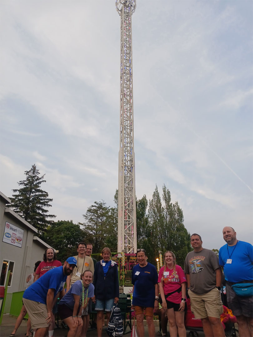 More ITOTs followed after dinner, starting with the flume, Thunder River. Some attendees who did not participate stationed themselves next to the landing point of the flume’s final drop, feeding tokens into the water cannons as their fellow attendees floated by. Unsurprisingly, as the soaked participants exited the ride, the guilty parties all pleaded innocent! The XScream drop tower and the Flying Swings rounded out the ITOTs for the day.