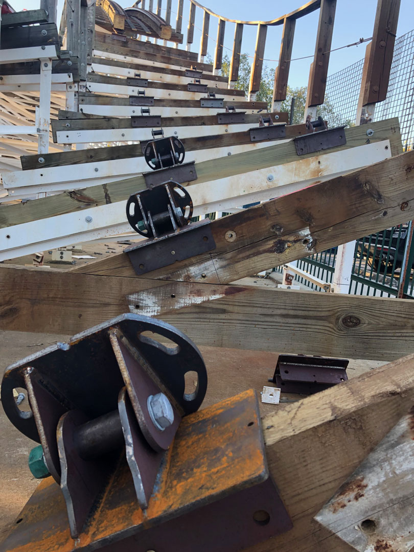 The thrilling ride was the result of an ambitious design that received early accolades, but the maintenance requirements of an aggressive wood coaster operating year-round in Florida’s heat eventually rendered it a less-than-comfortable experience for many park guests. It was therefore a not-so-unexpected surprise when the coaster shut down for a brief period of overhaul in March; however, it was a surprise when it was discovered that Rocky Mountain Construction (RMC) — and not the coaster’s original designer and builder — was tasked with the project of revitalizing Mine Blower.