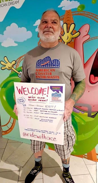 ACE New Jersey Assistant Regional Representative Mark Davidson displays the event’s agenda at the park entrance, featuring several ITOTs.