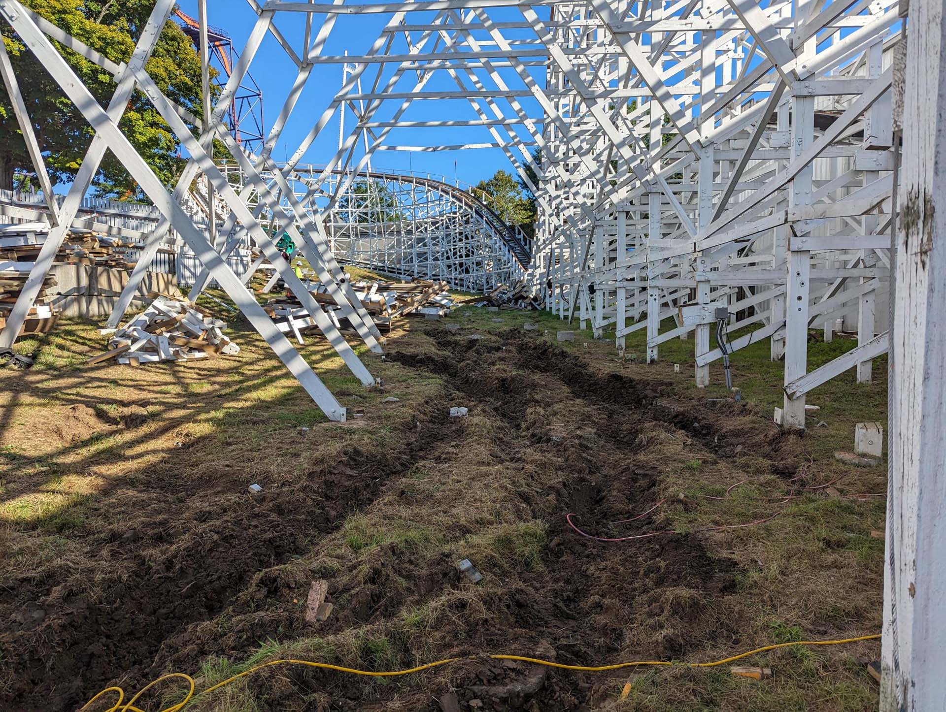 When Gravity Group has completed its offseason work, about 600 feet of track between (what Brick refers to as the “fantail curves”) will have been replaced as well as structure and concrete footers — some of which date back to the coaster’s original construction because few were replaced when Curtis D. Summers and Charlie Dinn rebuilt the coaster in 1986. It will be the first of two phases of significant work (the second of which will take place between the 2024 and 2025 seasons) that will address almost all the track not previously replaced by during rehabilitation efforts by MVR, CCI and GCII. Wildcat will continue to operate with its Millennium Flyer trains.