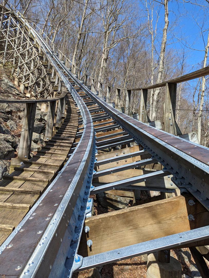 Earlier in 2023, Lake Compounce announced the closure of the park’s 1927 Herbert Schmeck/Philadelphia Toboggan Company (PTC) wood coaster, Wildcat, an ACE Roller Coaster Landmark. Despite recent investments in the ride, including a partial retrack and the addition of two new Millennium Flyer trains by Great Coasters International, Inc. (GCII) in 2017, it had developed a reputation for roughness, which led to the park deciding to close the ride while deciding on a path for improvement. Speculation began among those in the coaster enthusiast community with rumors of GCII’s Titan track being in the ride’s future, due in part to the park having installed it on sections of Boulder Dash at the start of the 2023 season. However, following consideration of it and Rocky Mountain Construction’s (RMC) 208 RetraK technologies, Lake Compounce decided Wildcat would be another recipient of Gravity Group’s Engineered Precut Track that received endorsements for the way it improved The Beast (Kings Island, Mason, Ohio) in 2022 and Grizzly (Kings Dominion, Doswell, Virginia) this previous season.