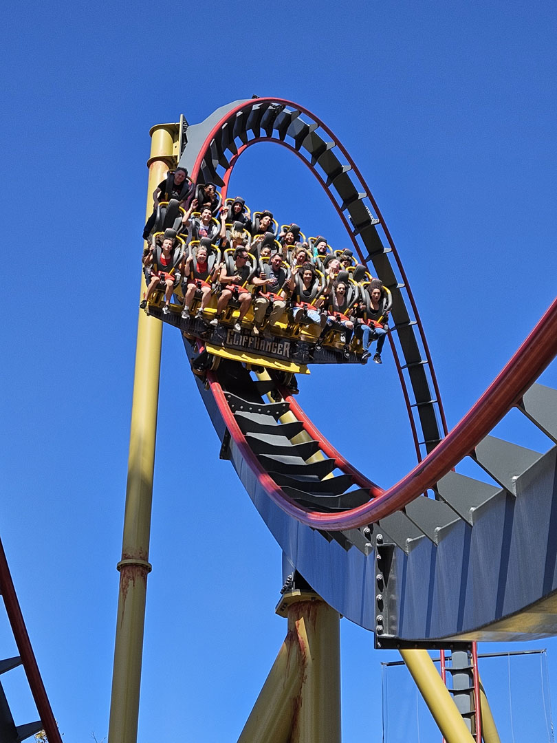 The park closed at 11, and with thousands — and thousands! — of people departing, ACE was lucky to avoid the parking lot and enjoy an hour of ERT. The park threw in a third coaster, so enthusiasts were able to enjoy Iron Rattler (Rocky Mountain Construction’s cliff-hugging I-Box masterpiece), Roadrunner Express (Arrow’s last mine train) and Dr. Diabolical’s Cliffhanger (Bolliger & Mabillard’s seven-across dive coaster). Those who waited until the witching hour to give up their last iota of energy found that the parking lot was getting close to clearing up.