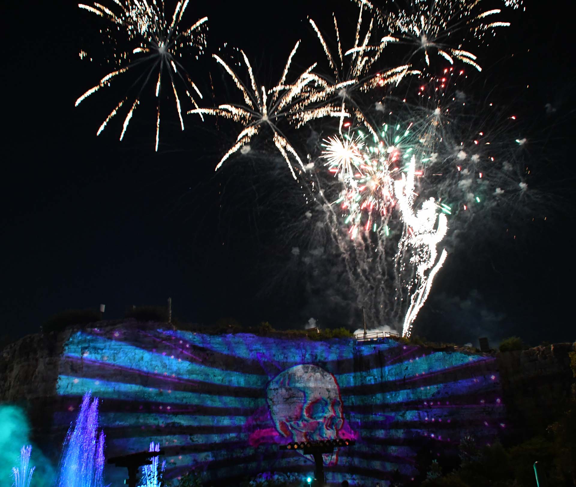 “Frightful Finale” is a popular hit that includes projects, fireworks, drones, fountains, fire and live actors.