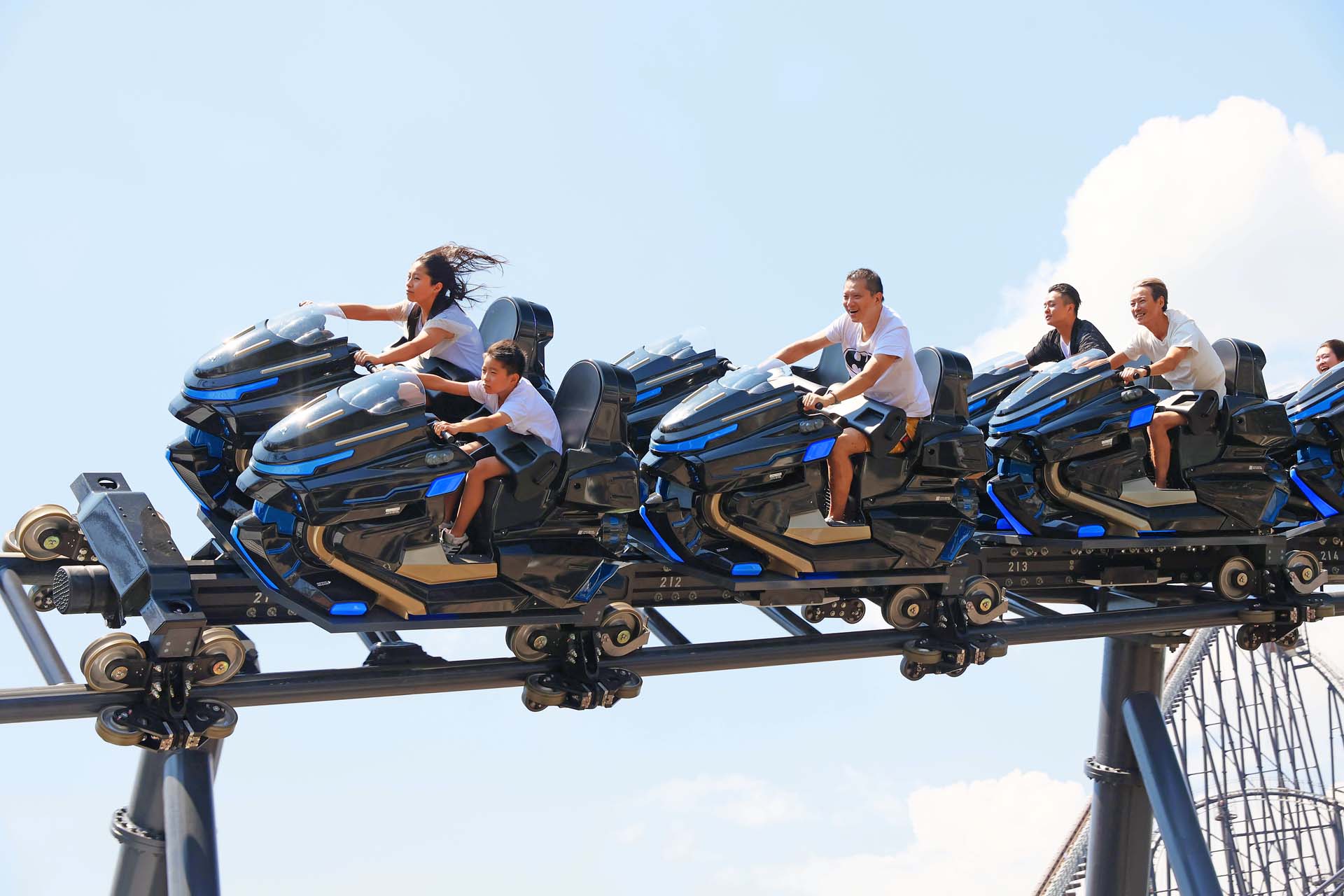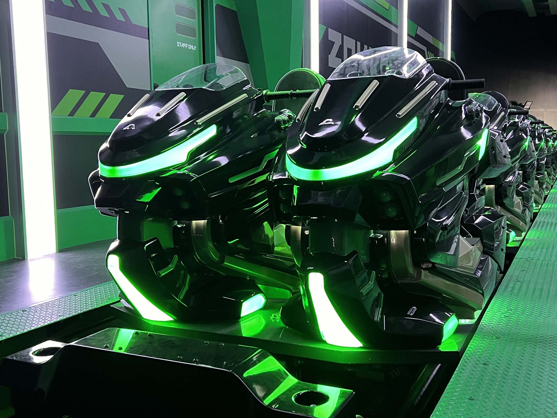And speaking of lighting, the trains feature snazzy lighting and onboard audio. Intamin seems to be getting its vehicle design down to a science. While the lighting may be reminiscent of Jurassic World VelociCoaster at Universal Islands of Adventure (Orlando, Florida), the feel of the vehicle will be closer to Hagrid’s Magical Creatures Motorbike Adventure. It’s a motorcycle style with handlebars but without the “straddle.”