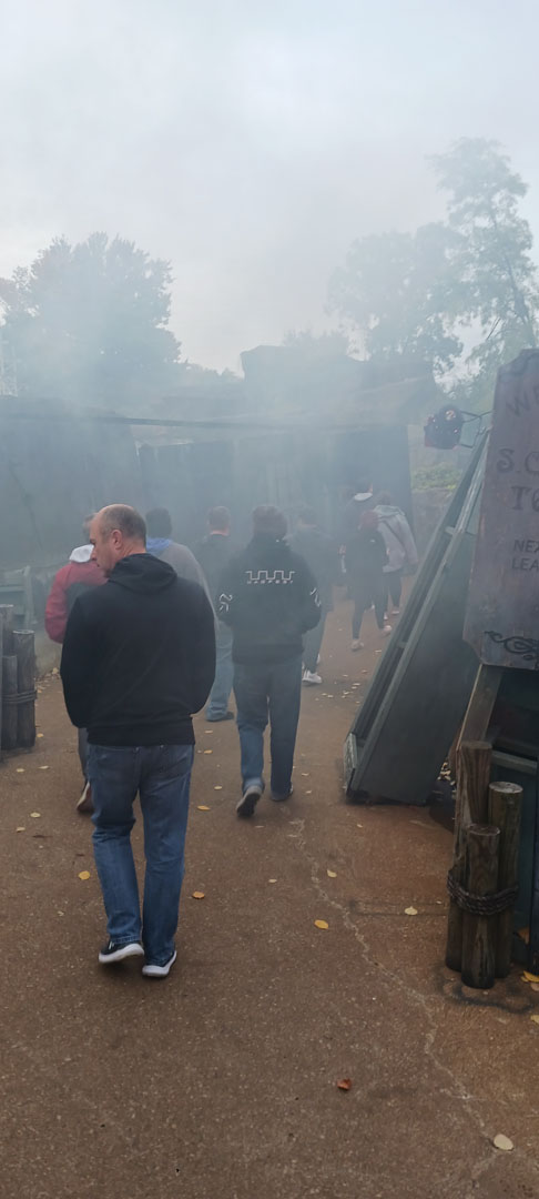 The daytime activities are more oriented to families with children, and some rides are only open until 6 p.m., at which time the park gets foggy, the sickly orange and green lights come on, spooky music can be heard and creatures of all kinds roam the park. Those who arrived for the event on the early side could participate in several informal takeover times (ITOTs) on The Exterminator, the Reverchon spinning mouse; Journey with Thomas (train); and Old Mill, the oldest ride in the park (1901).