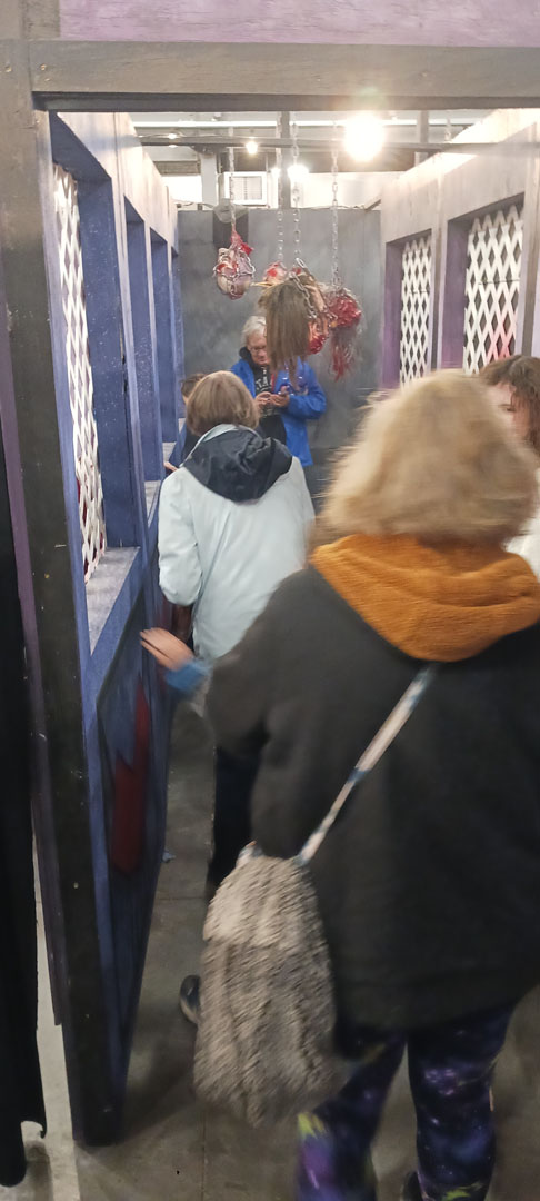 Another perk was experiencing mALICE in Wonderland three ways! This extremely popular haunt is even more popular this year because of its expansion into mALICE in Wonderland Unleashed. Attendees were offered (1) a lights-on walkthrough before the haunt opened, (2) a first-in-line walkthrough when the haunt opened and (3) access to the second level of the haunt for a bird’s-eye view of the public experiencing the various scenes and characters. Kennywood’s director of operations, Marie Ruby, explained to attendees before the initial walkthrough how the haunt had been reconfigured and expanded since its opening year, when visitors had to choose one of two paths through the haunt.