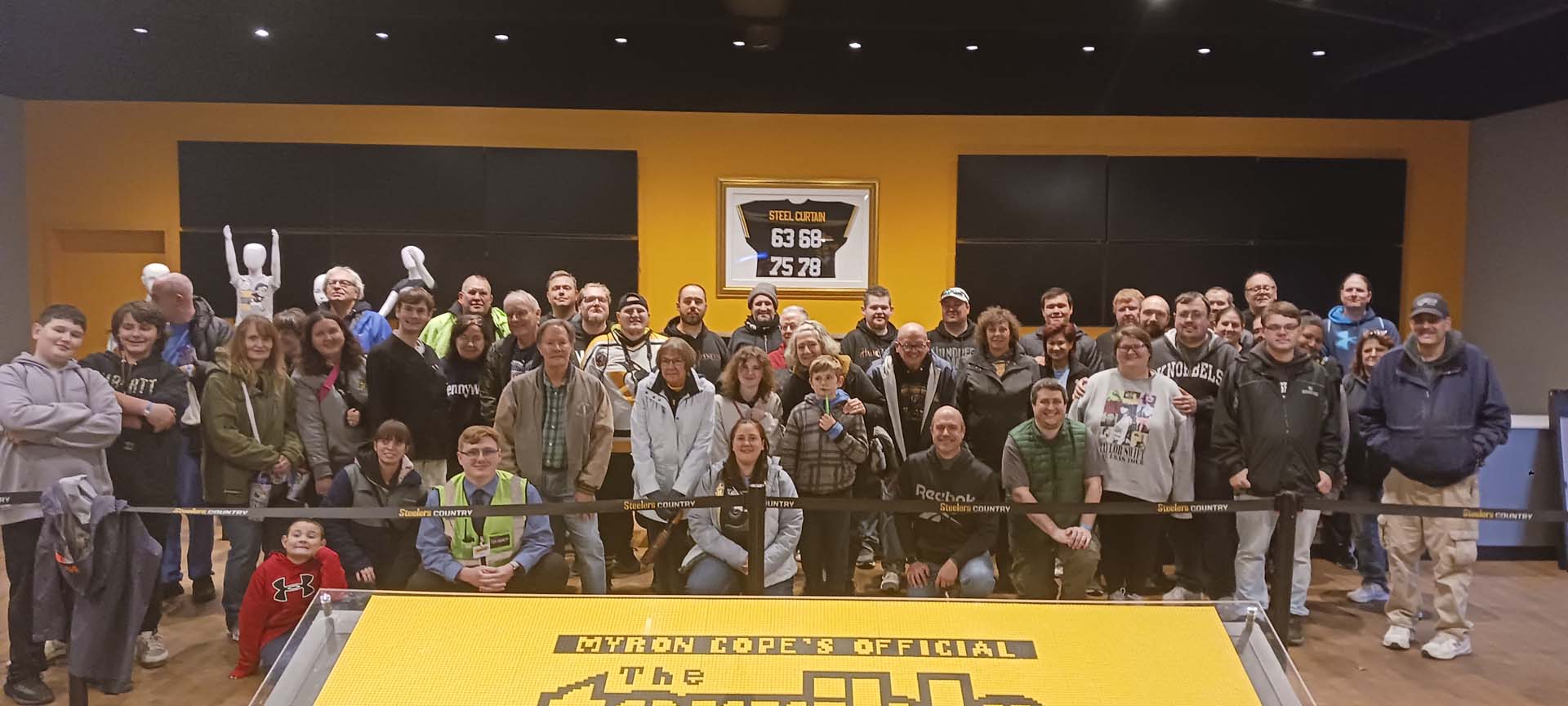 Kennywood’s famous Thunderbolt creates the perfect backdrop for a group photo.