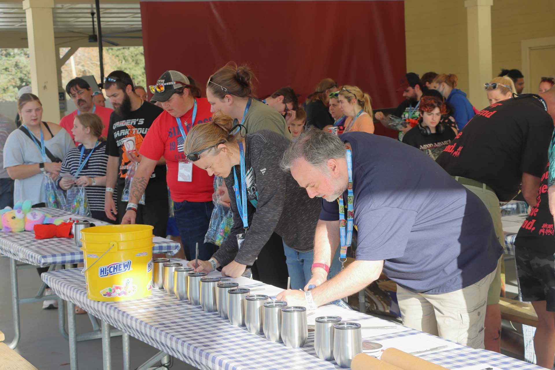 One highlight of the day was the construction tour of Iron Menace, Dorney Park’s much-anticipated addition for 2024. Iron Menace will be the Northeast’s first dive coaster and will feature a 95-degree drop. Attendees donned safety vests and Iron Menace hard hats to enter the construction area, with footers visible so all could see the future ride’s footprint. The first pieces of the track had been delivered and were stored in the overflow parking area, and the rest will continue being delivered in phases as needed during construction. The tour included a Q&A session, and everyone enjoyed imagining a ride in 2024. Dorney Park allowed each attendee to sign the promotional poster for Iron Menace attached to the construction fence, with the expectation that the signed poster will find its way somewhere on the finished ride (enthusiasts would be wise to be on the lookout next year).