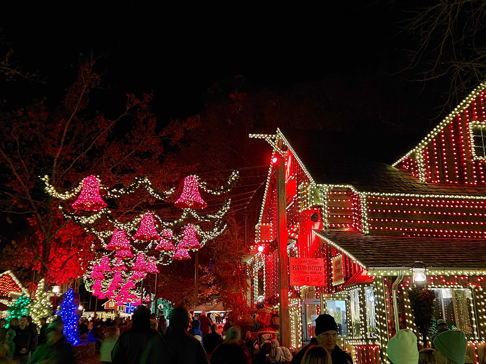A beautiful park by day, Silver Dollar City becomes a stunning site when illuminated with thousands of holiday lights.