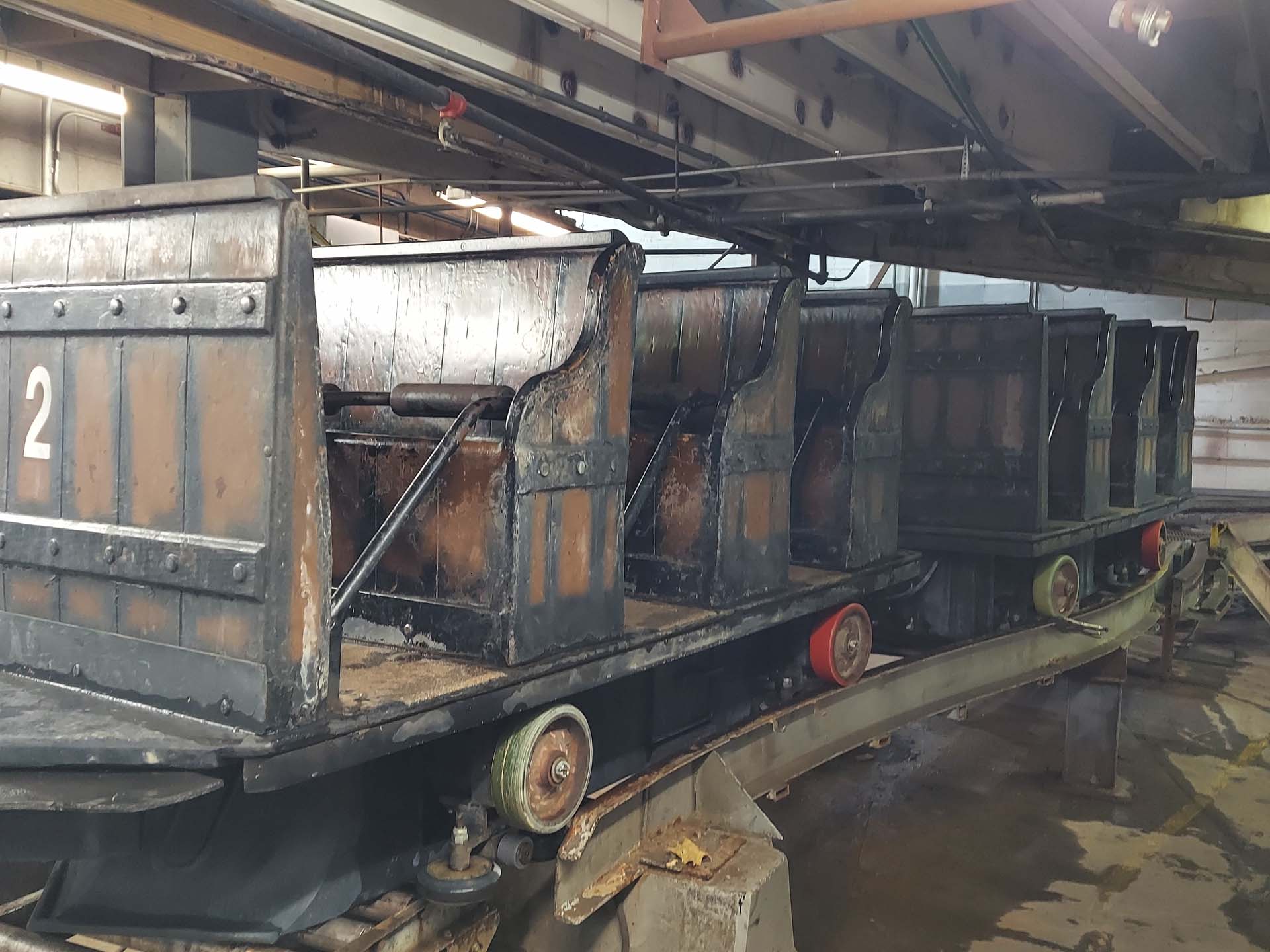 Once the presentations came to an end, it was time to head on over to the park’s original Fire In The Hole for one final ERT session. Before ERT commenced, attendees got to peek behind the curtain and venture through Fire In The Hole’s maintenance area. Highlights of the tour were getting close to the ride’s trains, looking at the ride’s display panel that still shows the section that was shortened and viewing a lovely avocado-colored fridge and sink that have been a part of the maintenance area since the ride opened back in 1972 — a nostalgic moment for those who grew up in the 1970s. Once everyone made their way through the maintenance area, the classic coaster was fired up and its final ERT began.