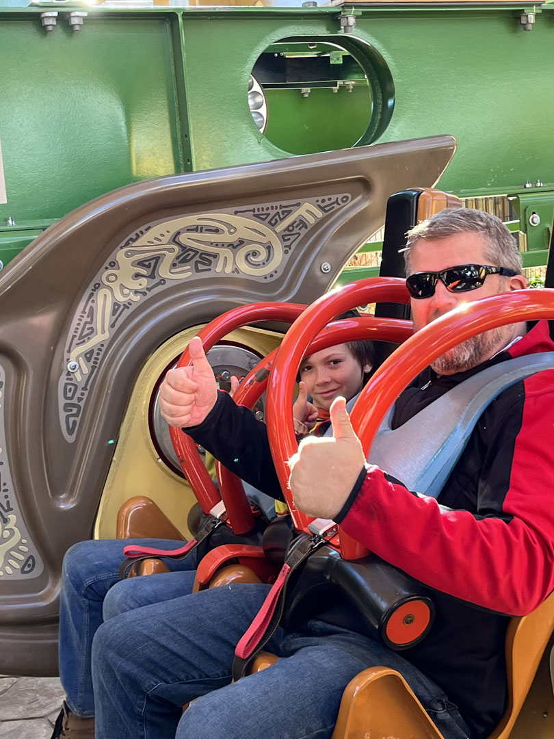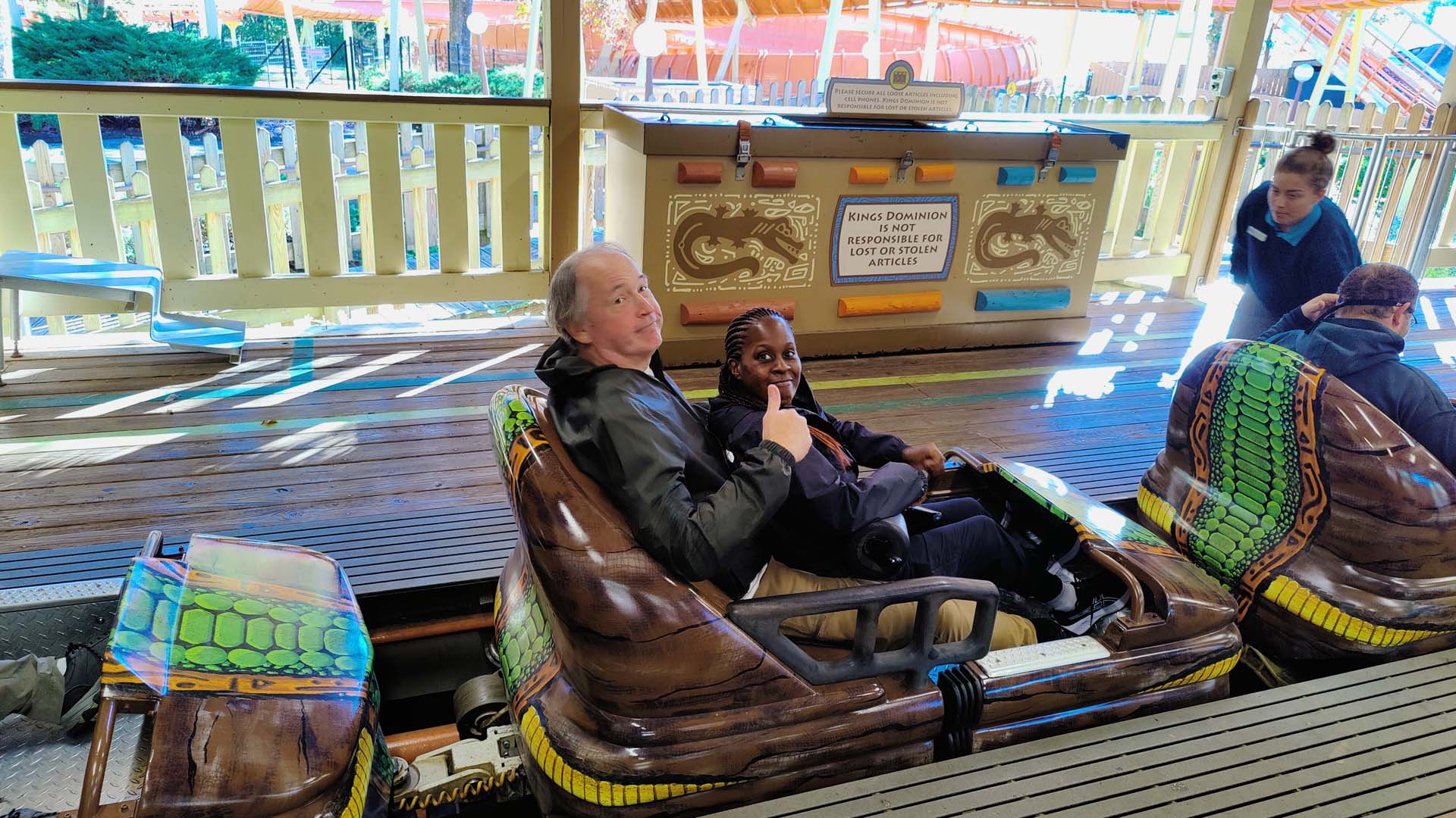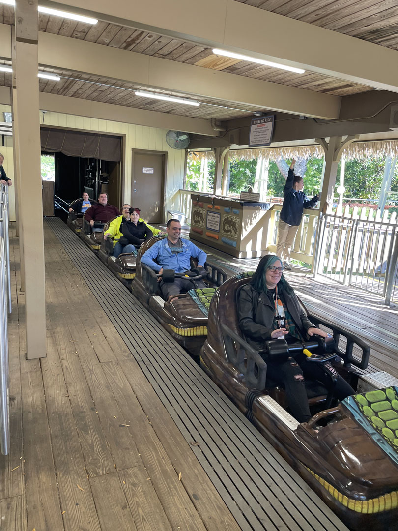 The morning began with ERT on Tumbili, the park’s 4D Free Spin. A few minutes prior to the park opening at 11 a.m., attendees were happy to walk next door and get the first rides of the day on Reptilian, the only Mack Rides bobsled in the United States. Many attendees next headed to Twisted Timbers for informal takeover time on the RMC I-Box coaster while others darted elsewhere to catch a ride or two before the crowds arrived.