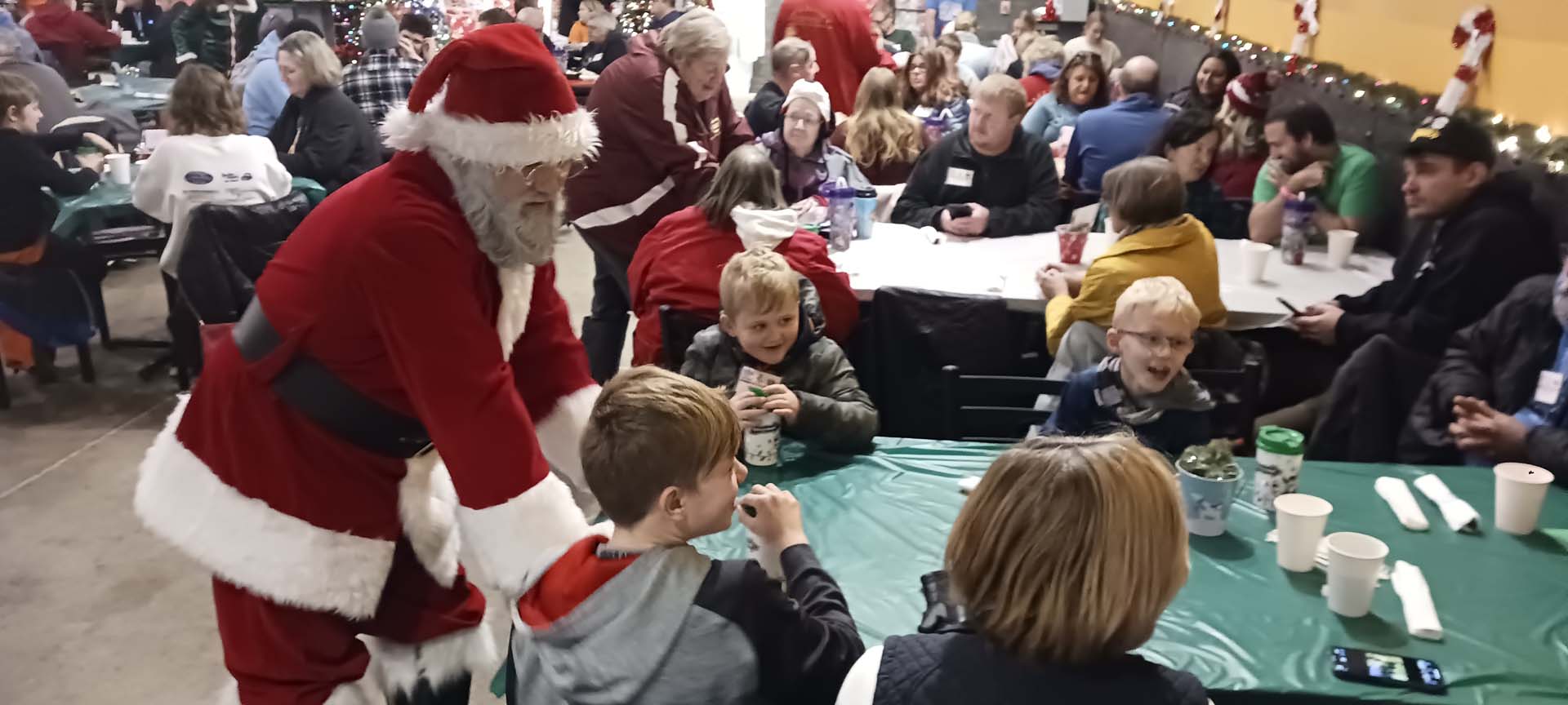 The Holiday Feast in the End Zone Café was truly a feast, as well as an opportunity to get out of the cold, sit and chat. Attendees could choose from meat dishes, soups, salads, pasta and potatoes, sides and desserts, along with assorted drinks. An unexpected treat during dinner was the presence of Santa, who was joined by Kenny Kangaroo for a bit. Santa made the rounds of tables, spending extra time at the ones with children. Santa, along with Mrs. Claus, also provided photo opportunities. Regional Rep Bill Linkenheimer III thanked everyone for coming to ACE Holiday Magic and added a special thanks to Elena Marziale, registration coordinator, and Ruby, along with the regional rep team.