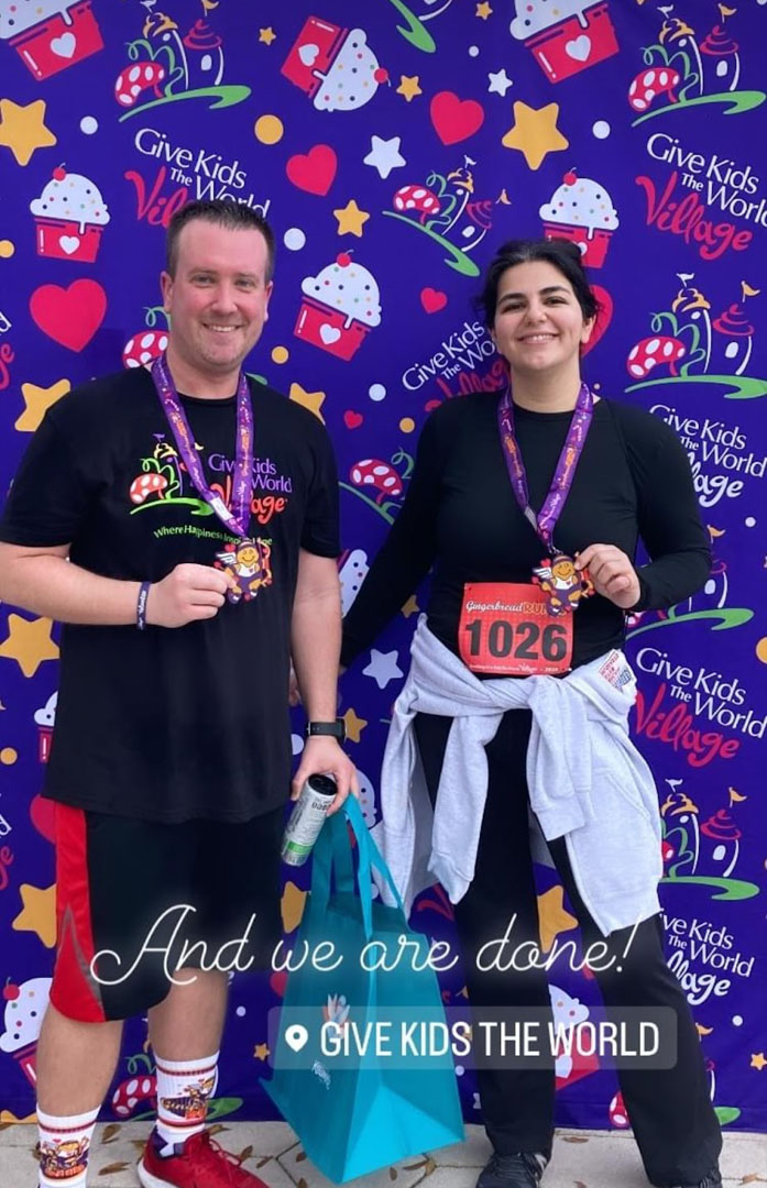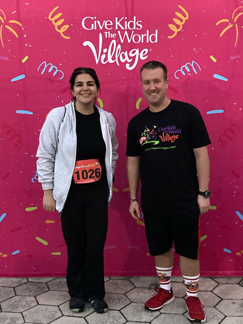 Not all races have to be run in order to make a difference. Seven enthusiastic ACE members, representing five regions, laced up their athletic shoes on February 10, 2024, to walk, run or hike in the Gingerbread Run 5k fundraiser event for Give Kids The World (GKTW) Village. Two ACE Cares team members traveled to Kissimmee, Florida, to experience the event in person at the Village, while the others participated virtually as they ambled through their own neighborhoods, hiked in local parks or walked laps in an enclosed nearby shopping mall.