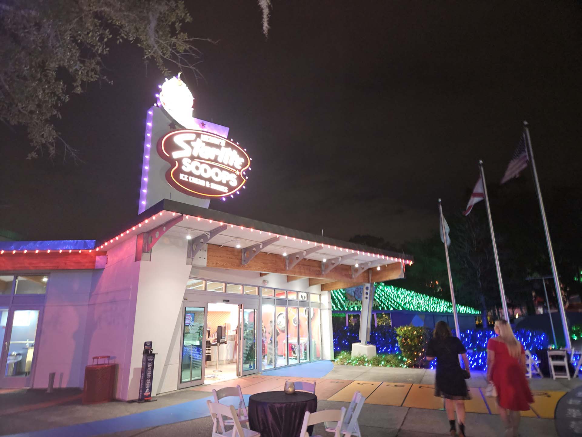 Henri’s Starlight Scoops was next on the tour, and attendees learned this building is the only one on campus not named after a wish kid. Henri Landwirth was actually the founder of the Give Kids The World Village. The retelling of his life’s journey ended with him starting the village after owning a Holiday Inn in central Florida and working with wish organizations to make sure that wish families always had a place to stay in the area for free. His help with accommodations grew as he found other area hotel owners who would take in families. He was inspired to create the Village by the story of one wish kid who did not make it to central Florida; he never wanted another kid to miss out again. The quotation of the night was in reference to Henri’s Starlight Scoops, “Happiness Inspires Hope and ice cream is a key component to that success.”