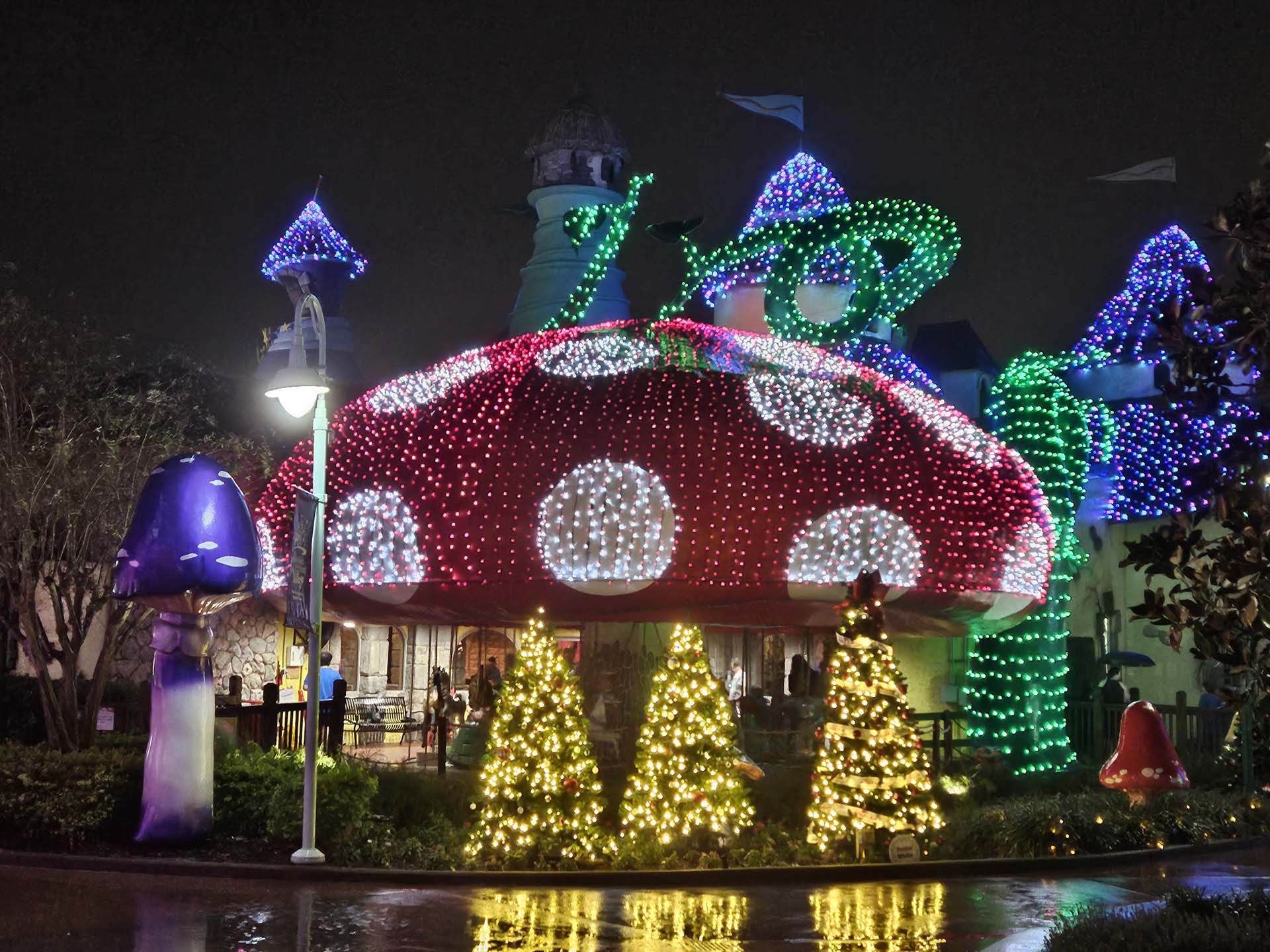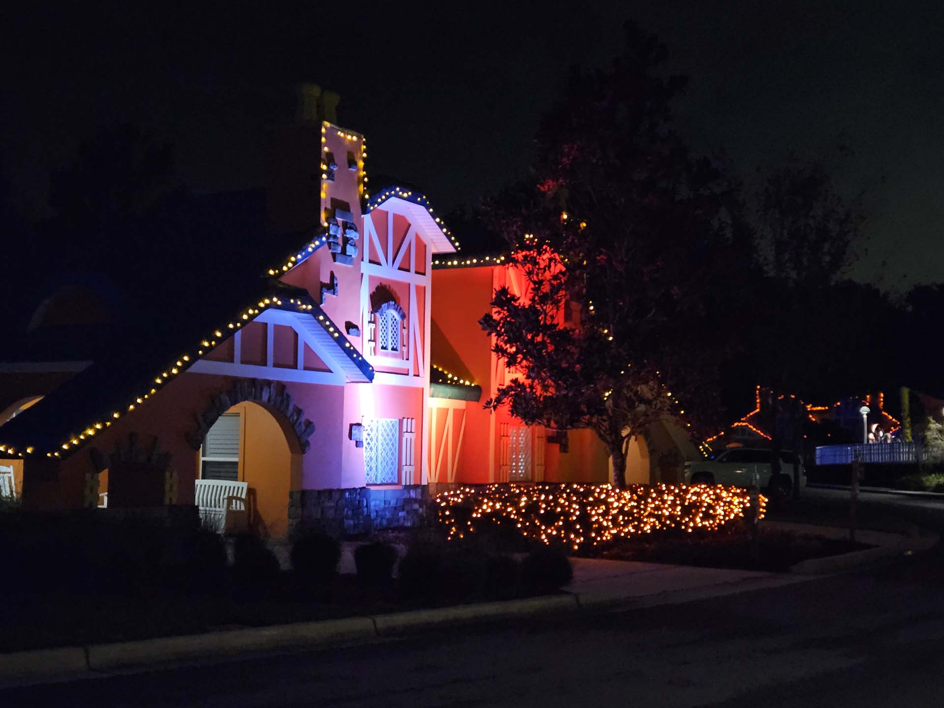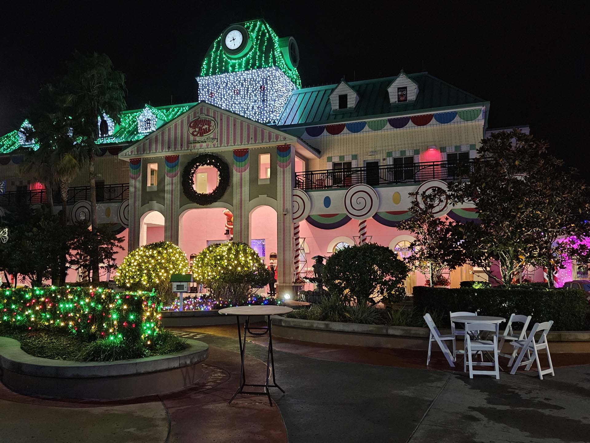 Christmas lights adorn everything from Towne Hall to the family villas.