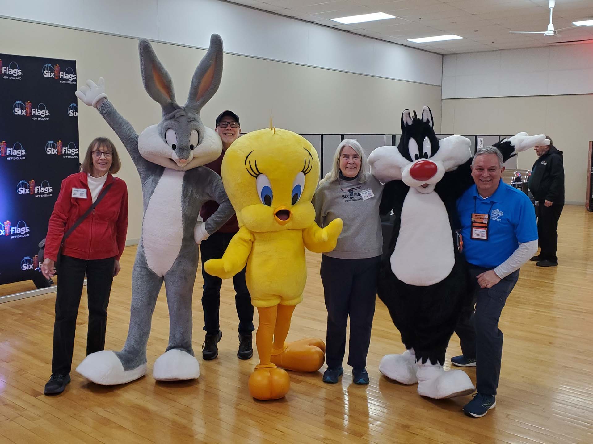 (left to right) Janice Good, Bugs Bunny, Paul Coulombe, Tweety Bird, Ann Feeley, Sylvester, Rus Ozana.