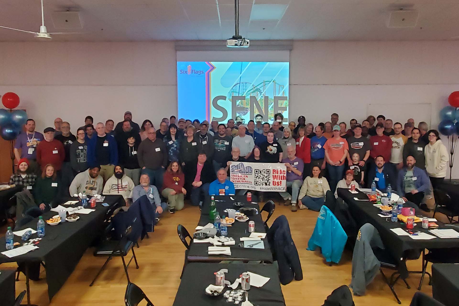 Forty degrees, overcast and followed by rain doesn't sound like pleasant weather for a roller coaster event, but this was The Great Nor’Easter, ACE New England’s off-season event, held this year on March 2 at Six Flags New England (SFNE) in Agawam, Massachusetts. The human resource building at SFNE was the perfect location for 87 enthusiasts and guests to gather to meet with friends they hadn’t seen all winter, hear presentations from area parks, enjoy lunch and win some door prizes.