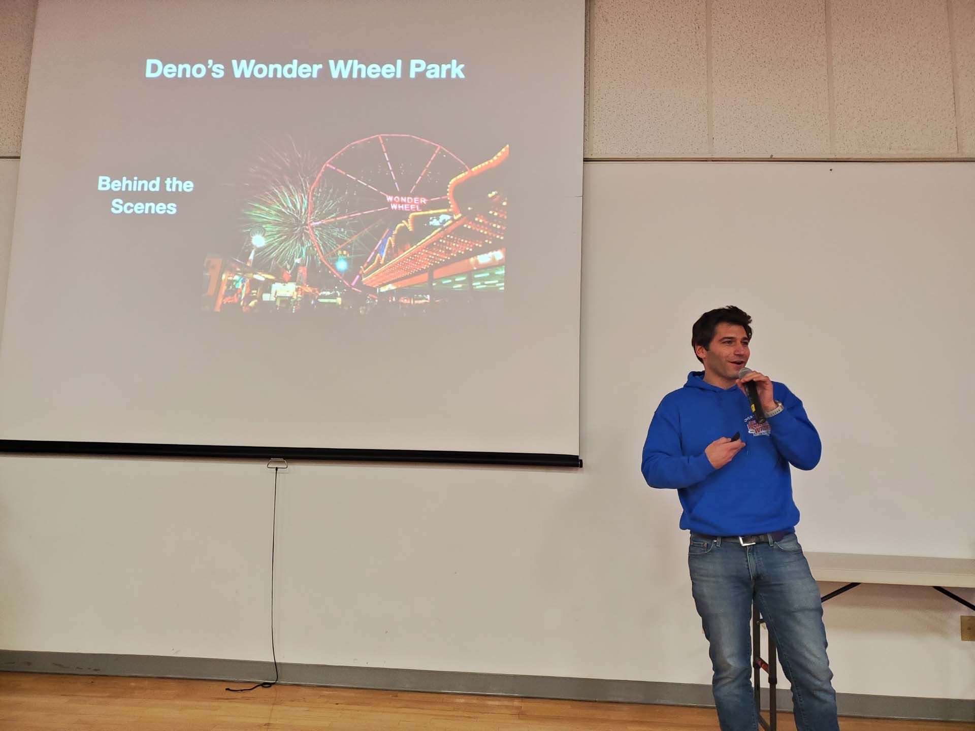 The final presenter was Deno (DJ) Vourderis from Deno’s Wonder Wheel Park (Brooklyn, New York). Vourderis — an ACEer himself — has quickly become a favorite among his fellow enthusiasts. His comedic skills were demonstrated during a temporary lull in the action, when he read from his cell phone and commented on rumors from coaster fan websites. Although Deno’s is not opening anything new in 2024, Vourderis took everyone through all he and his family do in the off-season to keep the family-run park going. He played some great videos showing how his new 3-D printer has reduced downtime on their rides by making many needed parts on location. He was also happy to show how everyone from his mother to his two young boys make every effort they can to help the family business. Vourderis gave attendees some free ride coupons for the park and definitely left everyone with a smile on their faces.