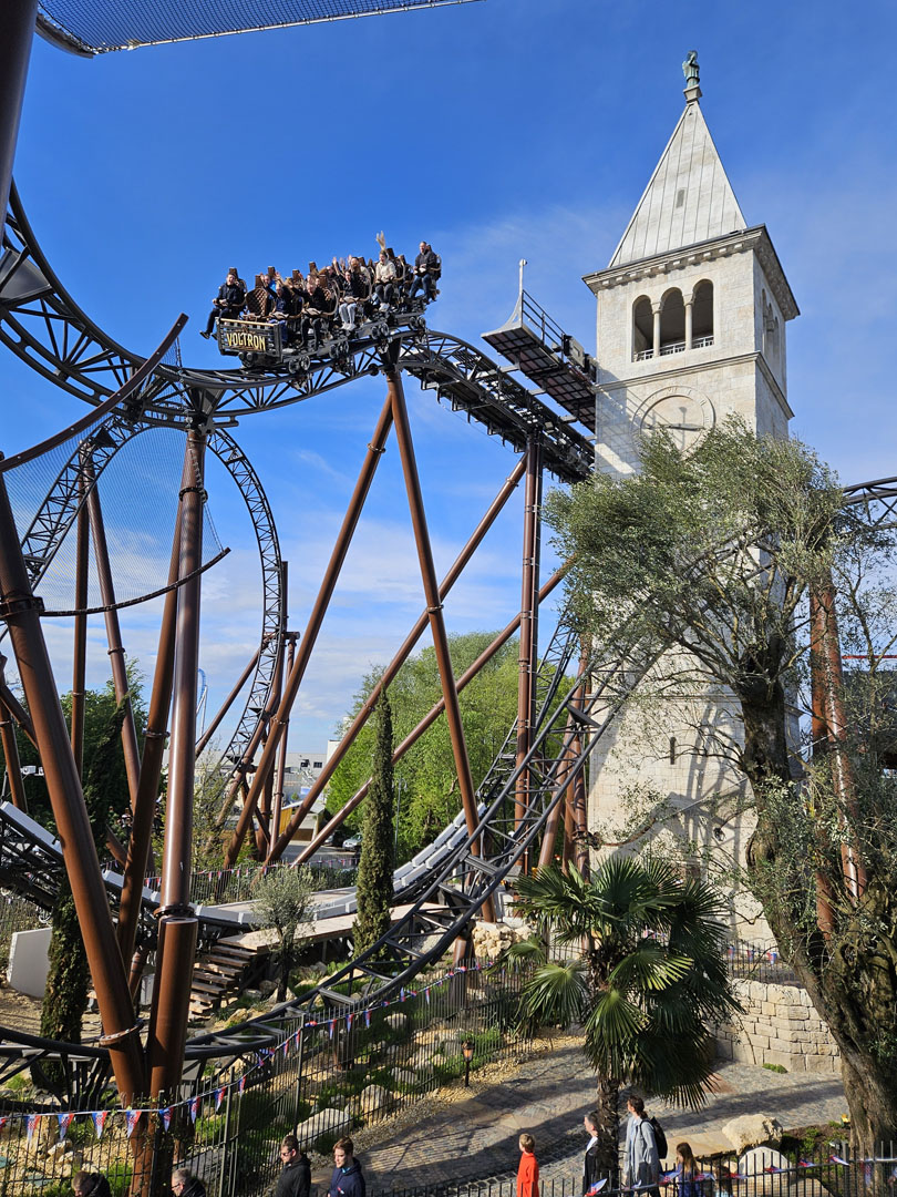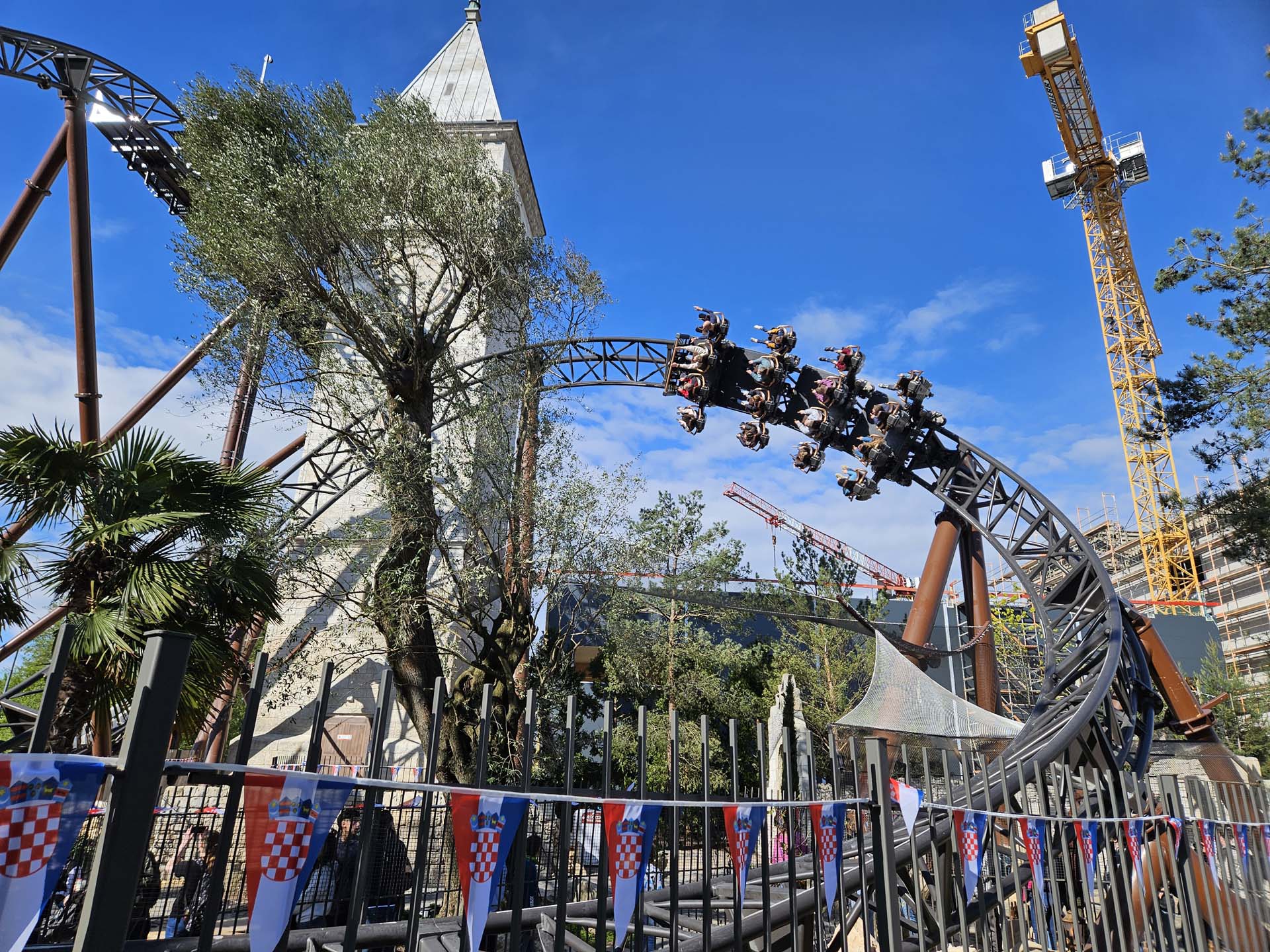 Construction began in January 2022, so more than two years have gone into the erection of Voltron Nevera. Among the Croatian elements in the plaza are a bell tower, a stone observation tower (where trains rush through an opening in the wall) and a gelato café across from Voltron. Even those who aren’t riding can get a charge from a spectator’s standpoint.