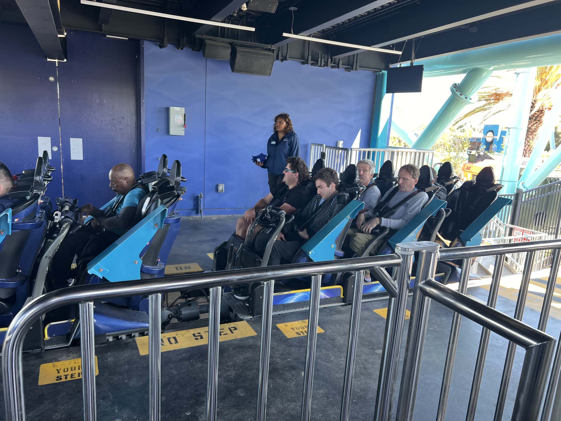 On Saturday, April 27, 60 ACEers came from across the country for Gills and Thrills at SeaWorld San Diego (California) to celebrate the park’s 60th anniversary, hosted by ACE Pacific Southwest. Most of the group was from the region, but some members traveled from Washington, D.C., Georgia and Colorado. 2024 was the inaugural year for the event and a few days late to celebrate World Penguin Day (April 25), but attendees were still treated to morning ERT on Arctic Rescue and Emperor. The small group meant no lines or waiting, so there were many re-rides of both coasters.