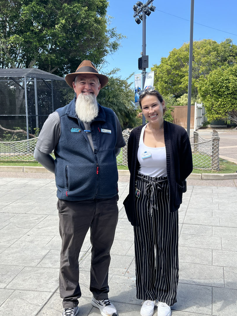 Jim Potter and Bailey Kurkov of SeaWorld San Diego (left); the organization’s newest ACEer came dressed for World Penguin Day.