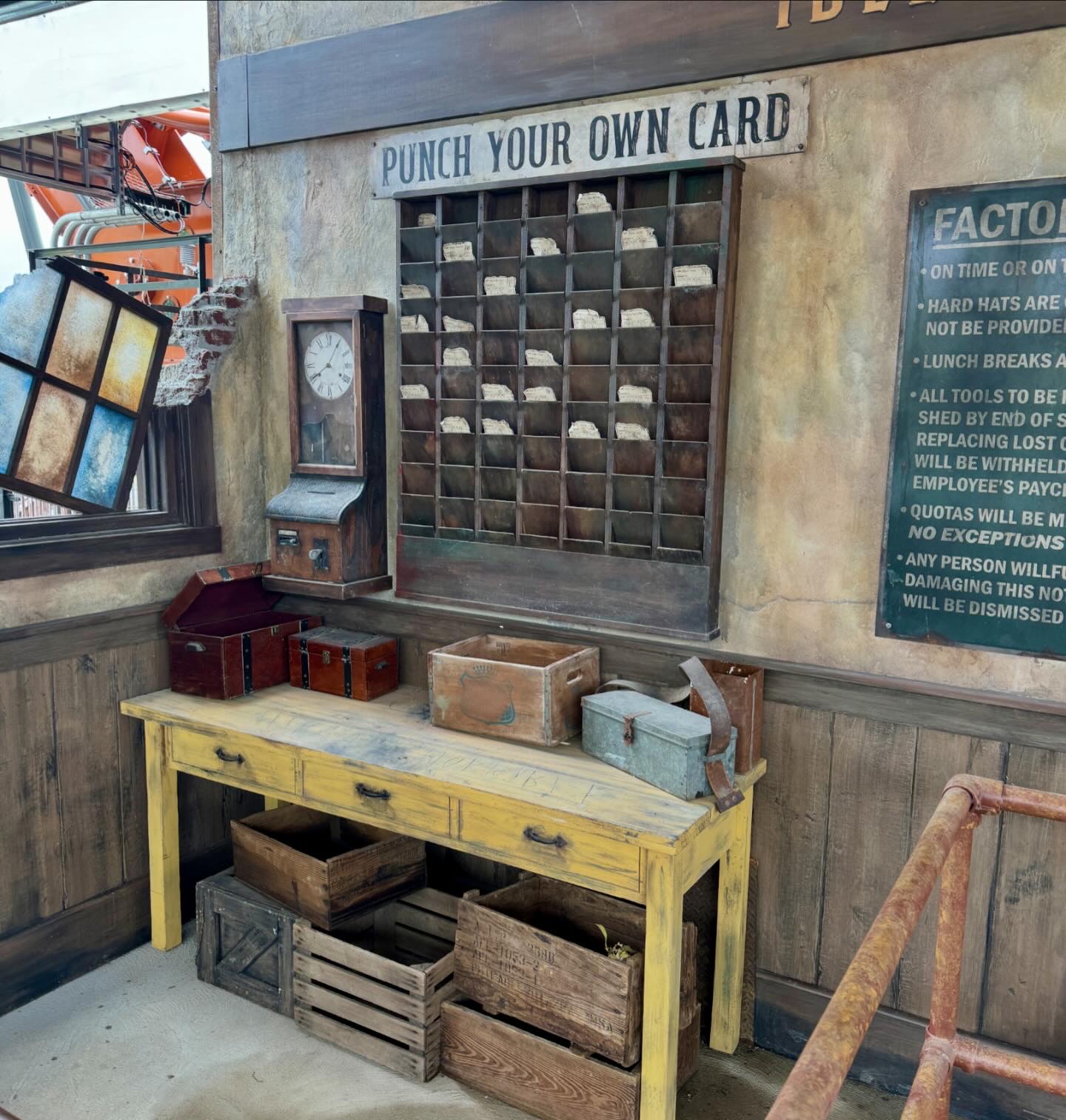Upon entering the Steel Yard, one is instantly greeted with elaborately themed displays and haunting music — all of which set the scene of an abandoned steel mill (perfect, considering the area’s steel industry history). The queue is themed into McTavish's office with no detail missed. There is even a new eatery: the Iron Mill Grill & Bar features a delicious menu including flatbread pizza and pierogies.