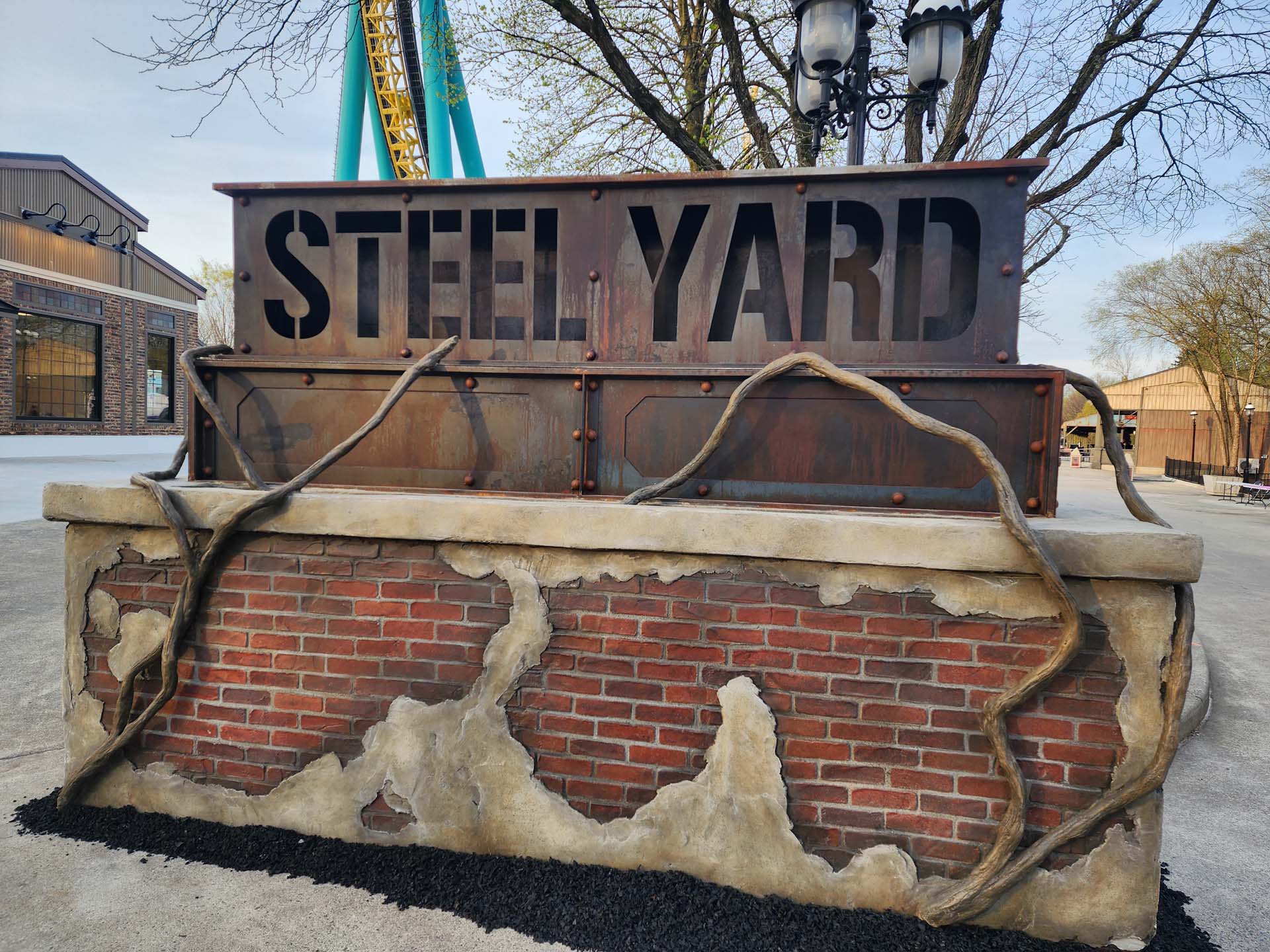 Steel Yard brings new life to the back corner of the park and includes the existing Possessed shuttle coaster and MT Buckets, representing a retheme of the Cedar Creek Flyers.