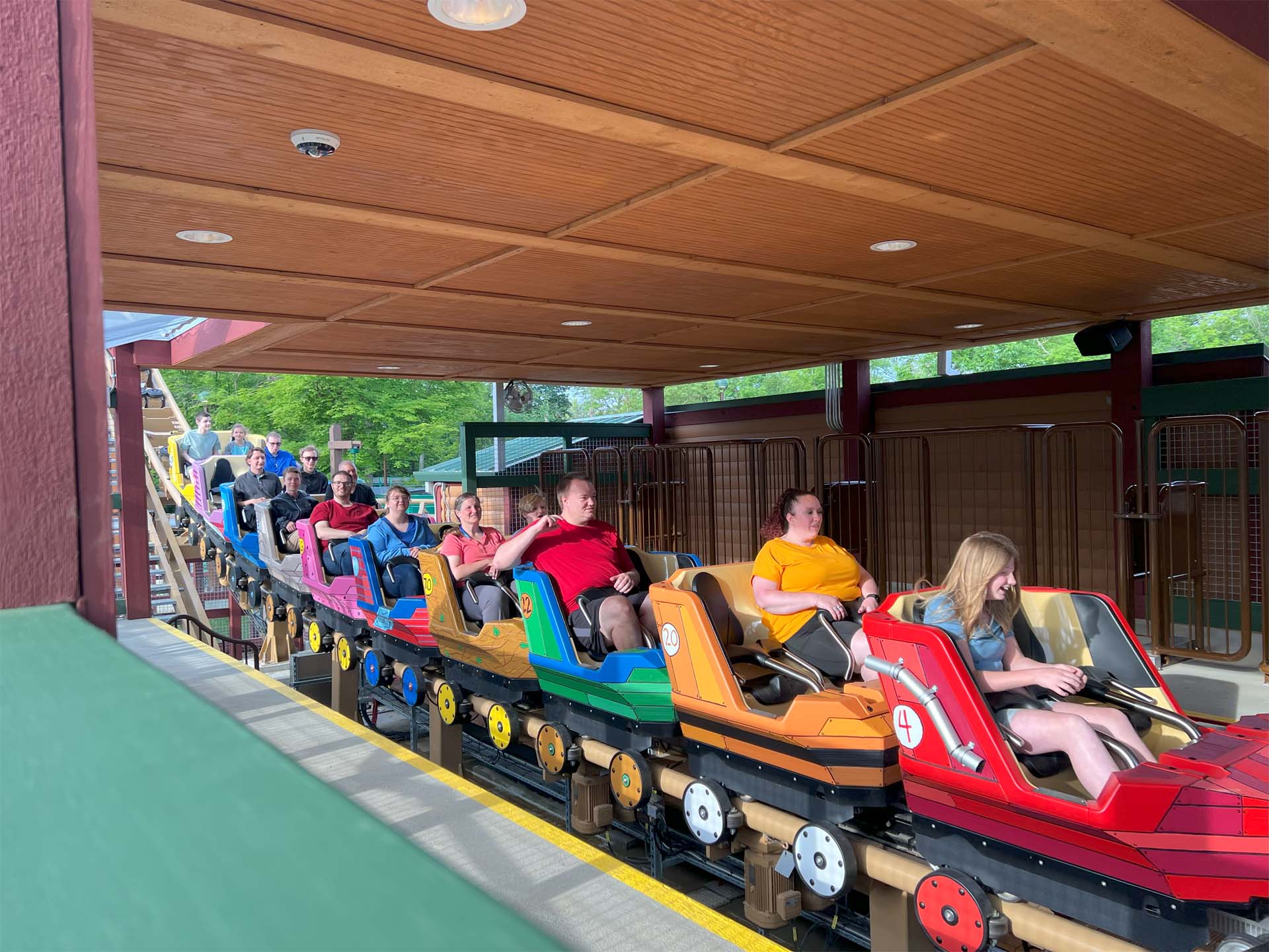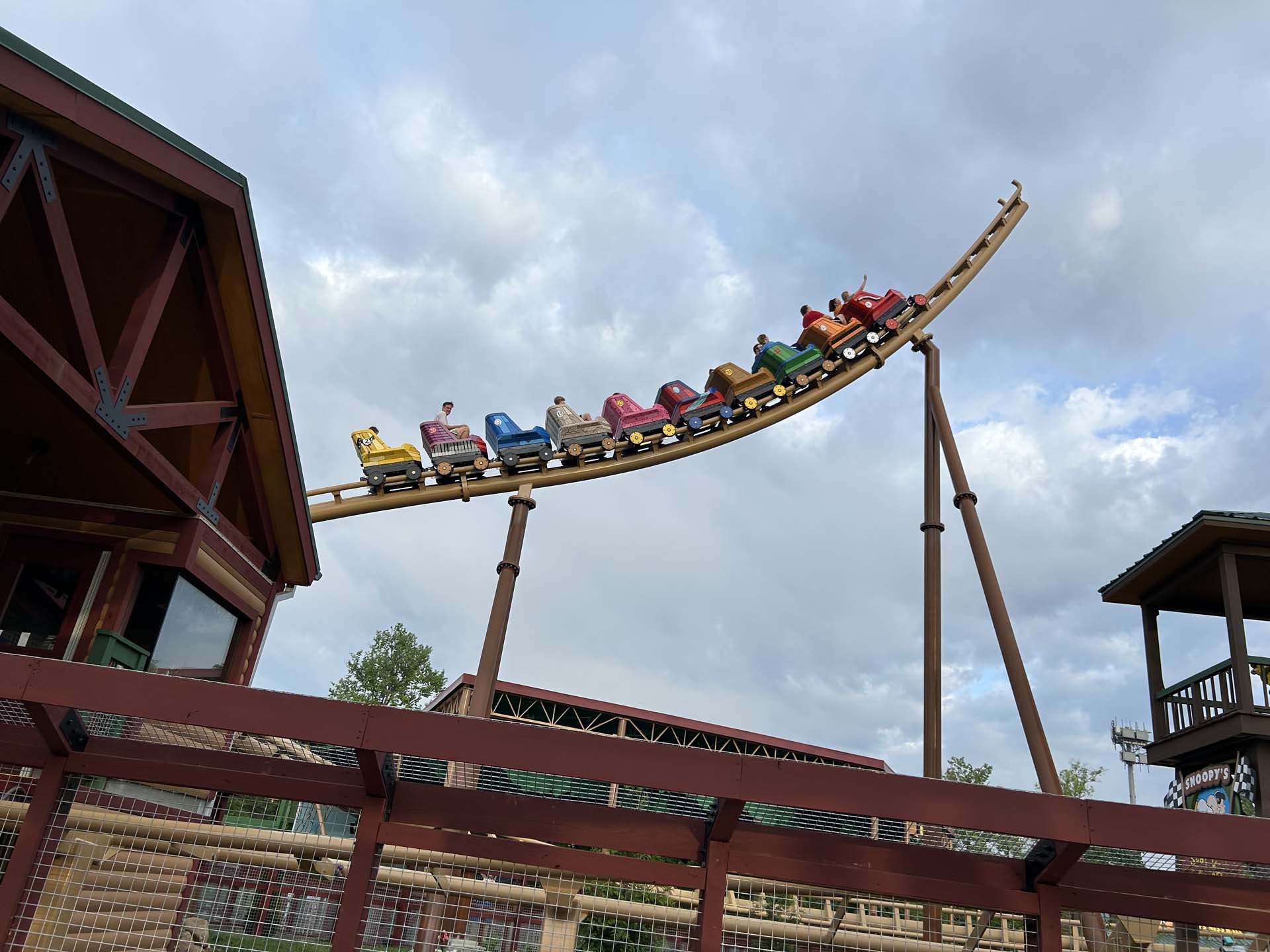 With a number of parks installing family coasters in recent years, it’s the adorable touches to the ride’s theme that set it apart. Out front, a tower with Franklin as the race’s announcer welcomes people in. Even the train itself is themed as soap box cars, which are all individually decorated to different Peanuts characters, including Charlie Brown and even Snoopy himself.