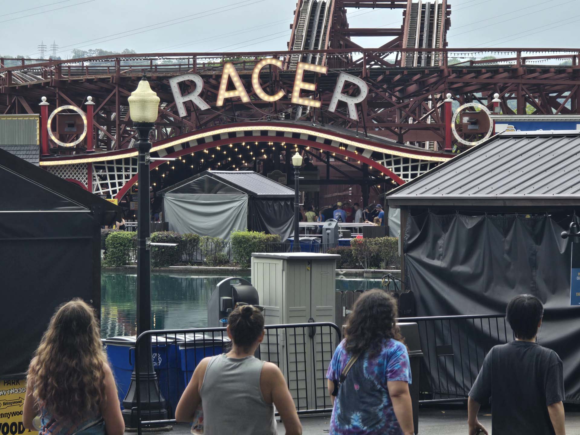 A behind-the-scenes experience was scheduled for the area between Racer and The Steel Curtain (not operating in 2024), but because of ongoing construction, it had to be modified to a tour of the maintenance area and carpentry shop. Marie Ruby, Kennywood’s director of ride operations, welcomed everyone and introduced Ricky Spicuzza, Kennywood’s recently appointed general manager. She alerted attendees to a surprise photo opportunity that would occur later when the lights in Racer’s sign would be modified to spell out “ACE.”