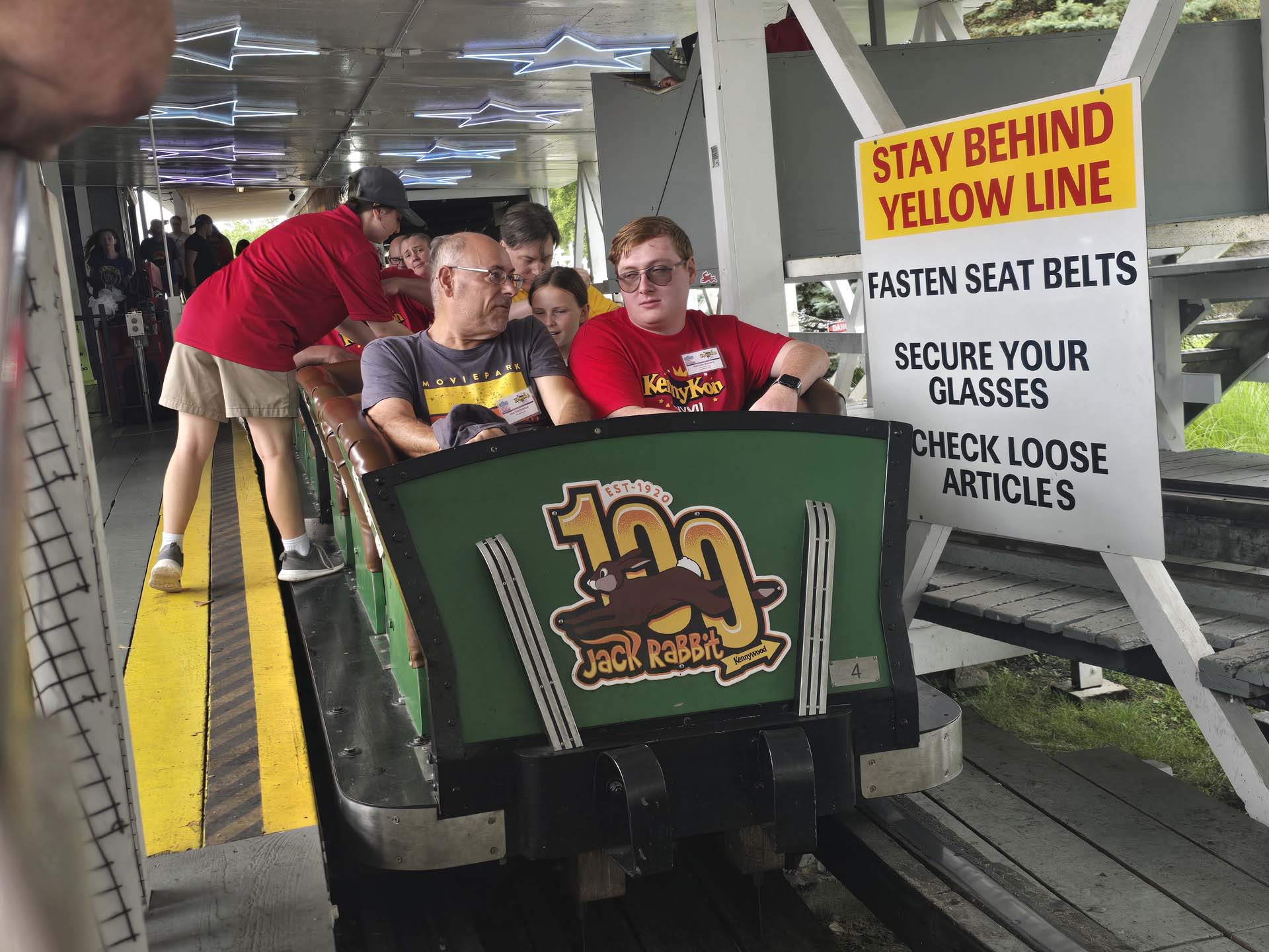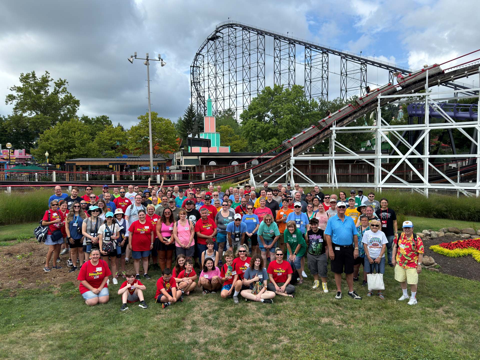 It was an overcast, muggy August 3 as 206 attendees checked in at the front gate of the West Mifflin, Pennsylvania, park Coincidentally, August 3 was also the first day of Kennywood’s 74th annual Fall Fantasy parades, during which local bands play and floats are created to represent the theme of the parade, which in 2024 was “Kenny Kangaroo’s 50th Birthday Bash.” Twenty-seven lucky attendees would win a raffle to ride in the Kennywood trolley, representing ACE as grand marshal for the parade.
