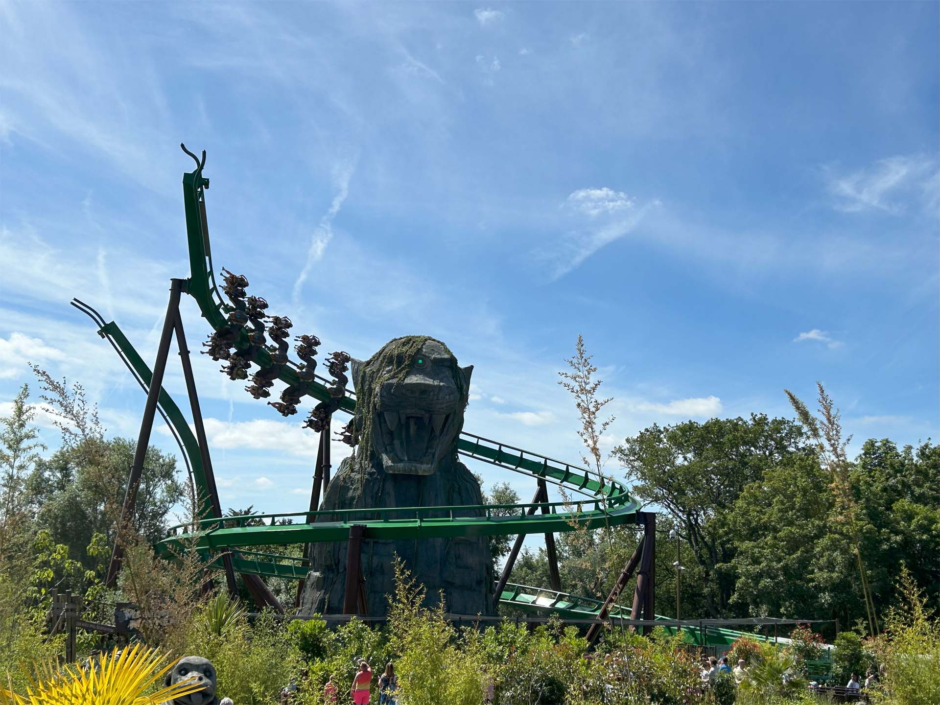 Saturday morning, attendees awoke, boarded the bilevel coach and were off early for the first park, Chessington World of Adventures (Chessington, Greater London, England). Beginning as a zoo in 1931, the park transitioned to Tussard’s management and began adding rides in 1987. Now a Merlin Entertainments park, it is the smaller sister of nearby Thorpe and Alton Towers. However, Chessington has installed rides for families with children, and the ride lineup reflects that focus without many “high-thrill” experiences.