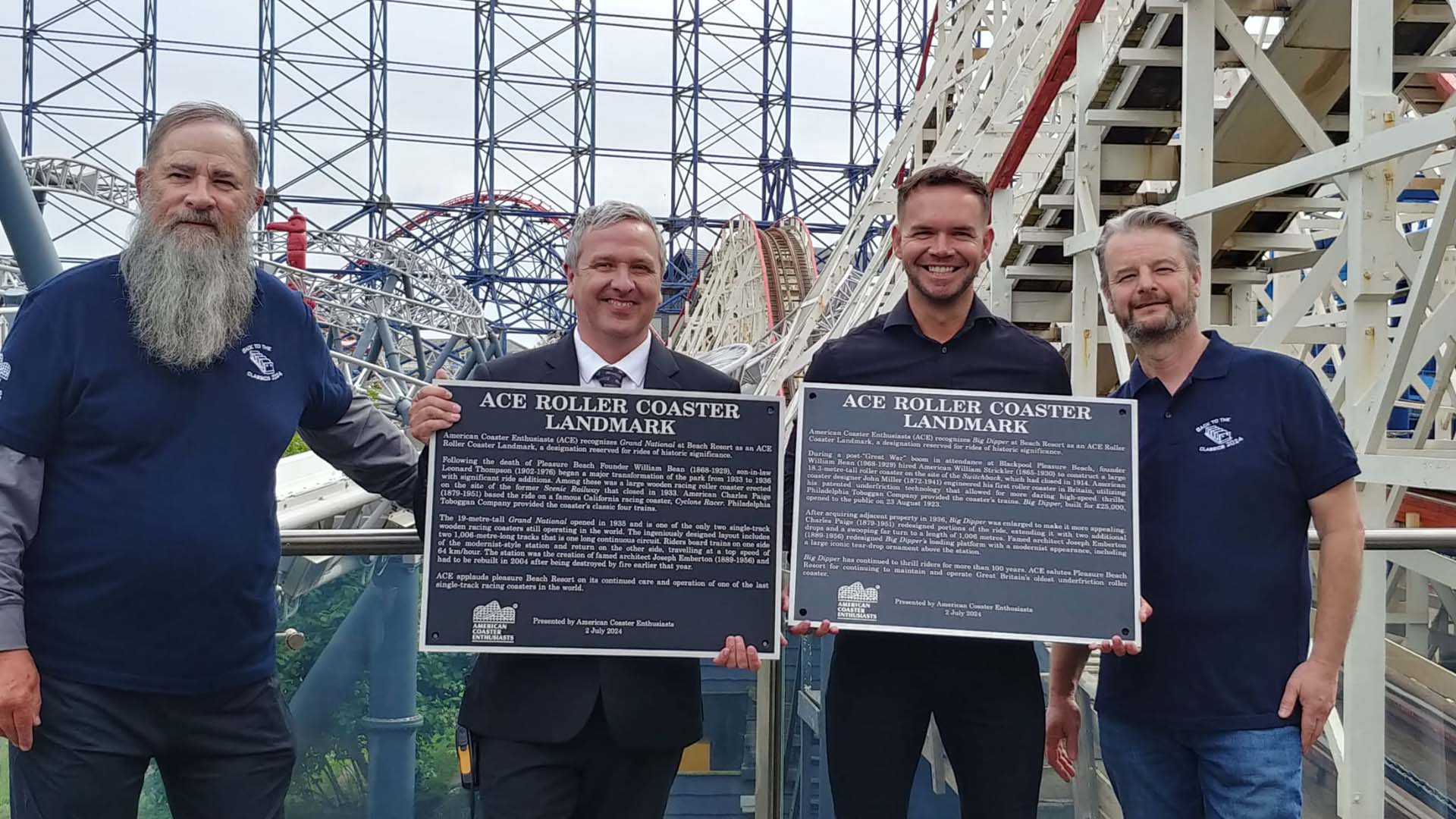 ACE Roller Coaster Landmark plaques were presented to Pleasure Beach Resort for its Grand National and Big Dipper.