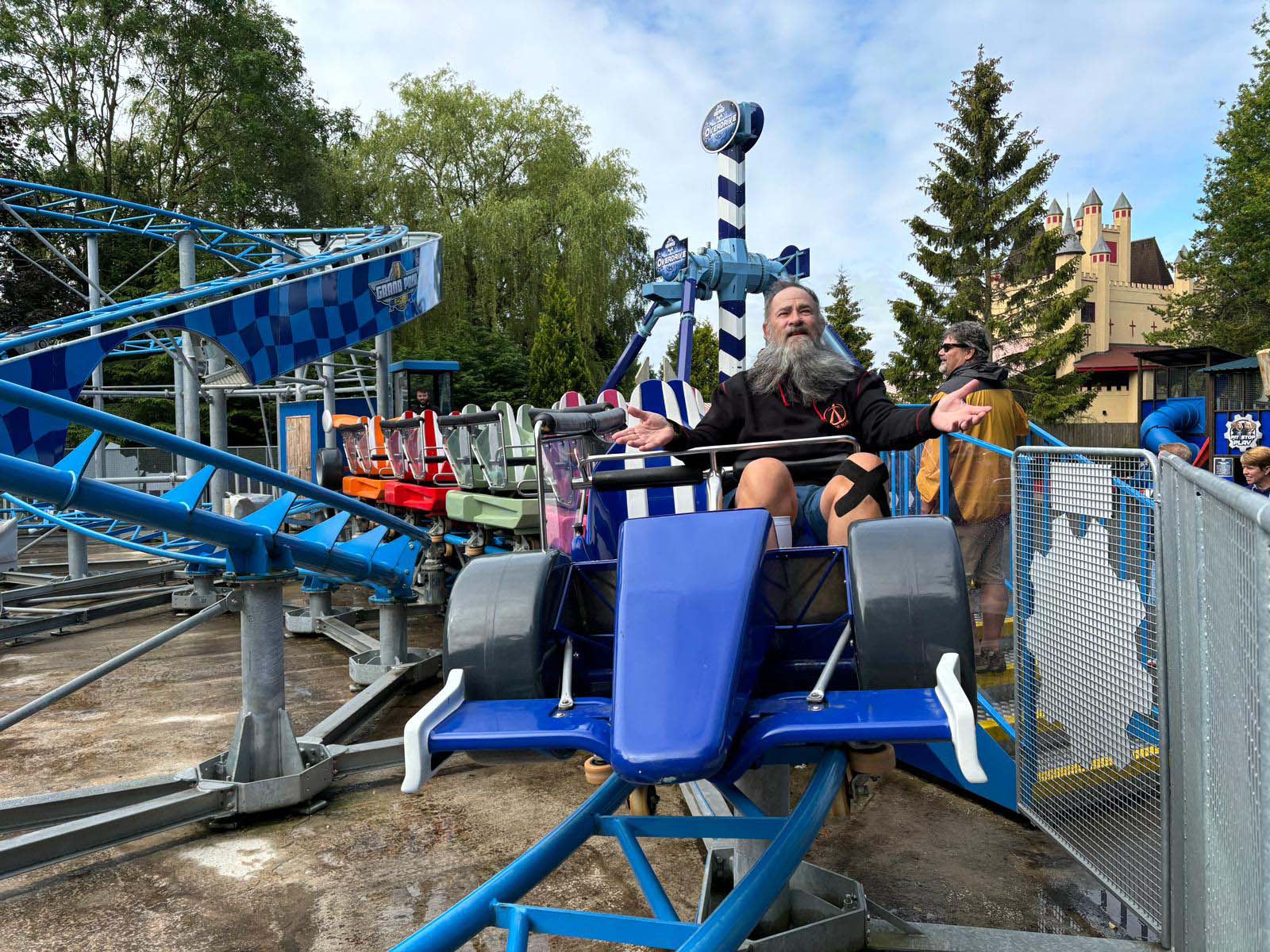 Day 5 started by checking out and heading to Gulliver’s Warrington (Cheshire, England). Attendees were allowed into the park before it opened to the public. First, one ride for everyone was offered on the unique SBF Grand Prix Racers. Next were a few rides on the home-built woodie, Antelope, followed by rides on Wriggler, a wacky worm. As the park opened to a large number of school groups, the ACE group left for the second park of the day.