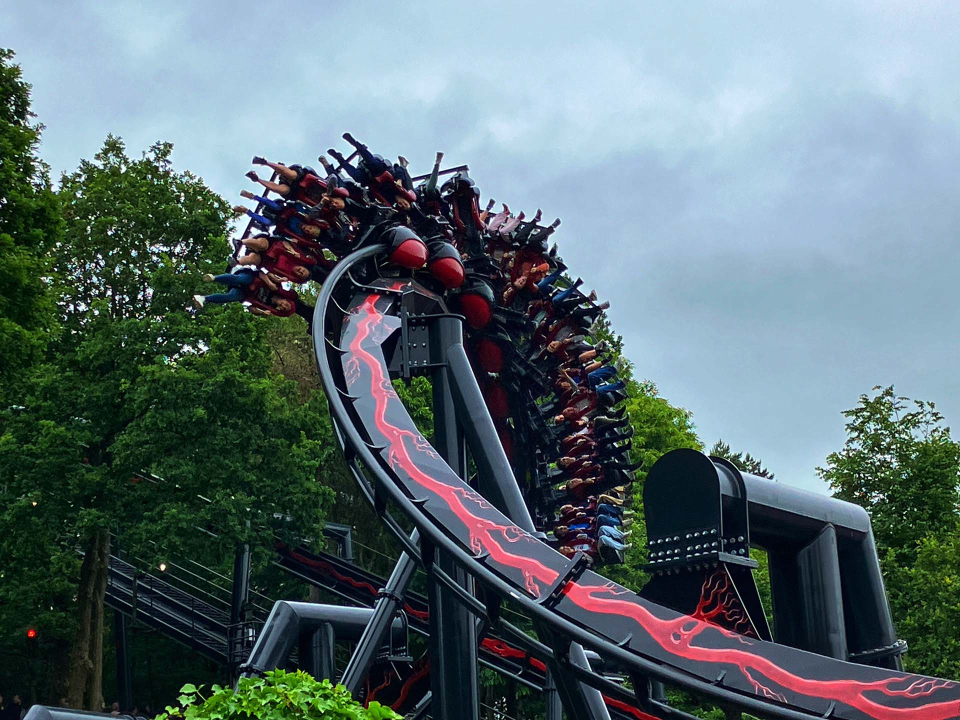 A group buffet lunch was enjoyed in the zoo’s cafeteria, where discussions focused on experiencing “don’t miss” attractions along with strategies for getting on the spinner (only a handful made it before it closed for the day). The afternoon ended with ERT on the new Bolliger & Mabillard shuttle wing coaster, Mandrell Mayhem. Attendees headed to the second hotel of the trip with smiles on their faces, tempted by the sight of Thorpe Park’s (Chertsey, Surrey, England) Hyperia coaster along the way (the last park of the trip).