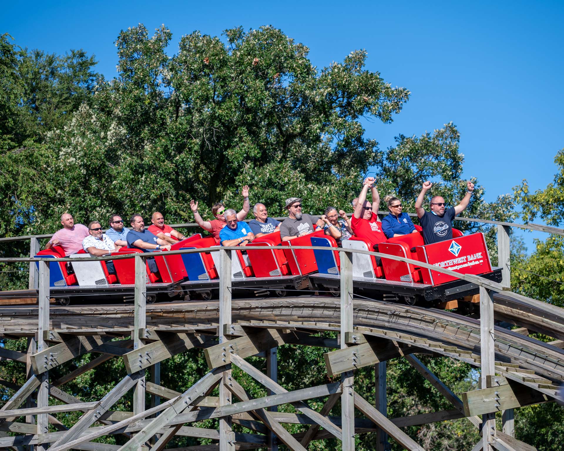 The morning started early with check-in at 8 a.m. Upon check-in, those in attendance could see drawings of what the park was raising money for at the Party in the Park event on August 17, held every year to fund restoration projects and keep the park operational. The fundraising project was revealed to be a $1 million redo of the entrance to the park that shares a side with not only the Legend roller coaster but also the Tipsy House. Some ACEers even got a little history of the park from park CEO John Pausley as they waited for the rides to open.