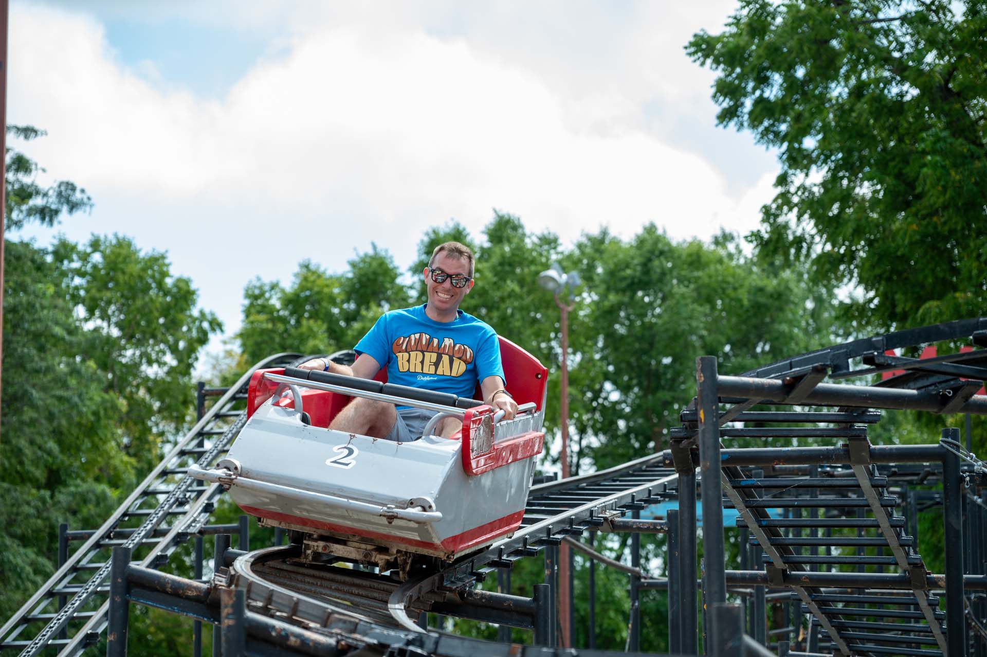 ACE Eastern Pennsylvania Regional Representative Mike Matscherz takes a ride on Mad Mouse — a recent addition to the park.