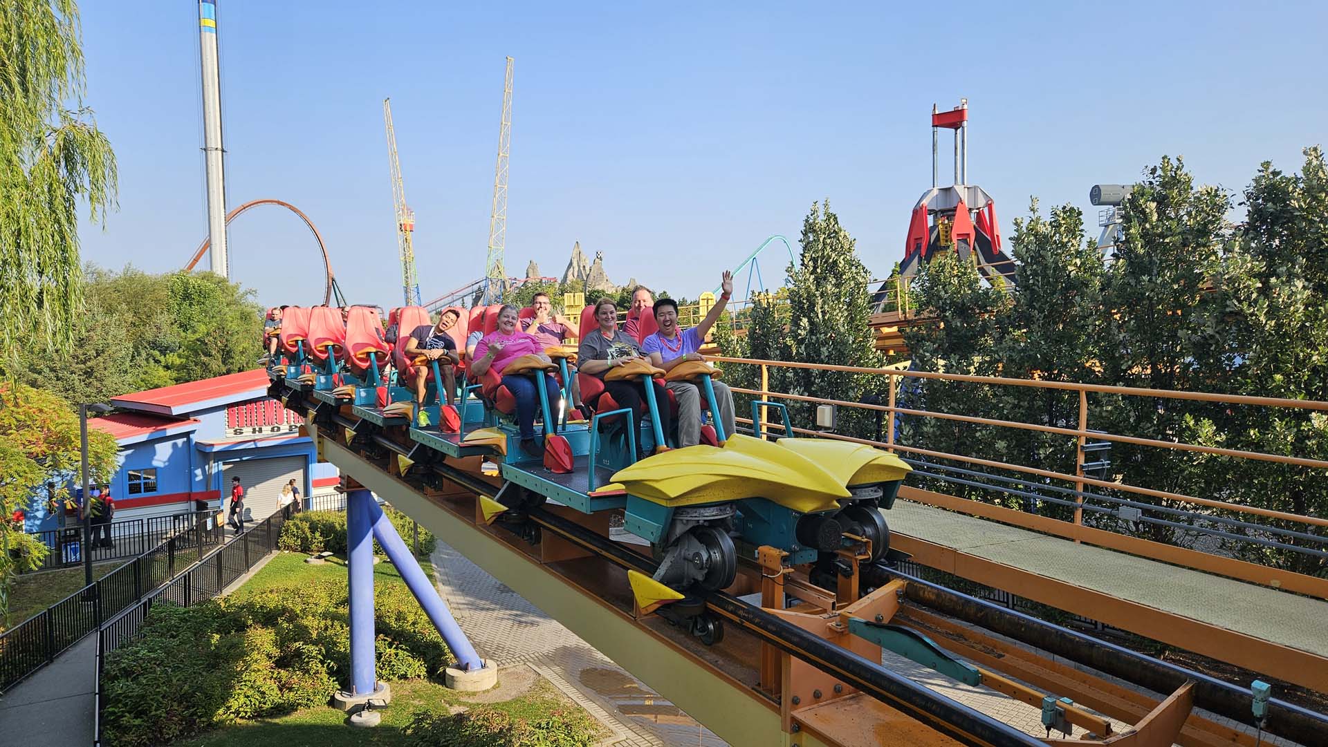 Everyone was left to their own adventures after breakfast, but it was not long before they gathered back at the Hall for an amazing buffet lunch. For the first timers, there was shock and surprise at the amount of food variation, including both halal and gluten-free options. With everyone stuffed from two buffet meals, it was time to get back out into the park and ride, ride, ride! Of course, it wouldn’t be Roller Coasters, Eh! without more food, and the final item was the Canadian Beavertail pastry.