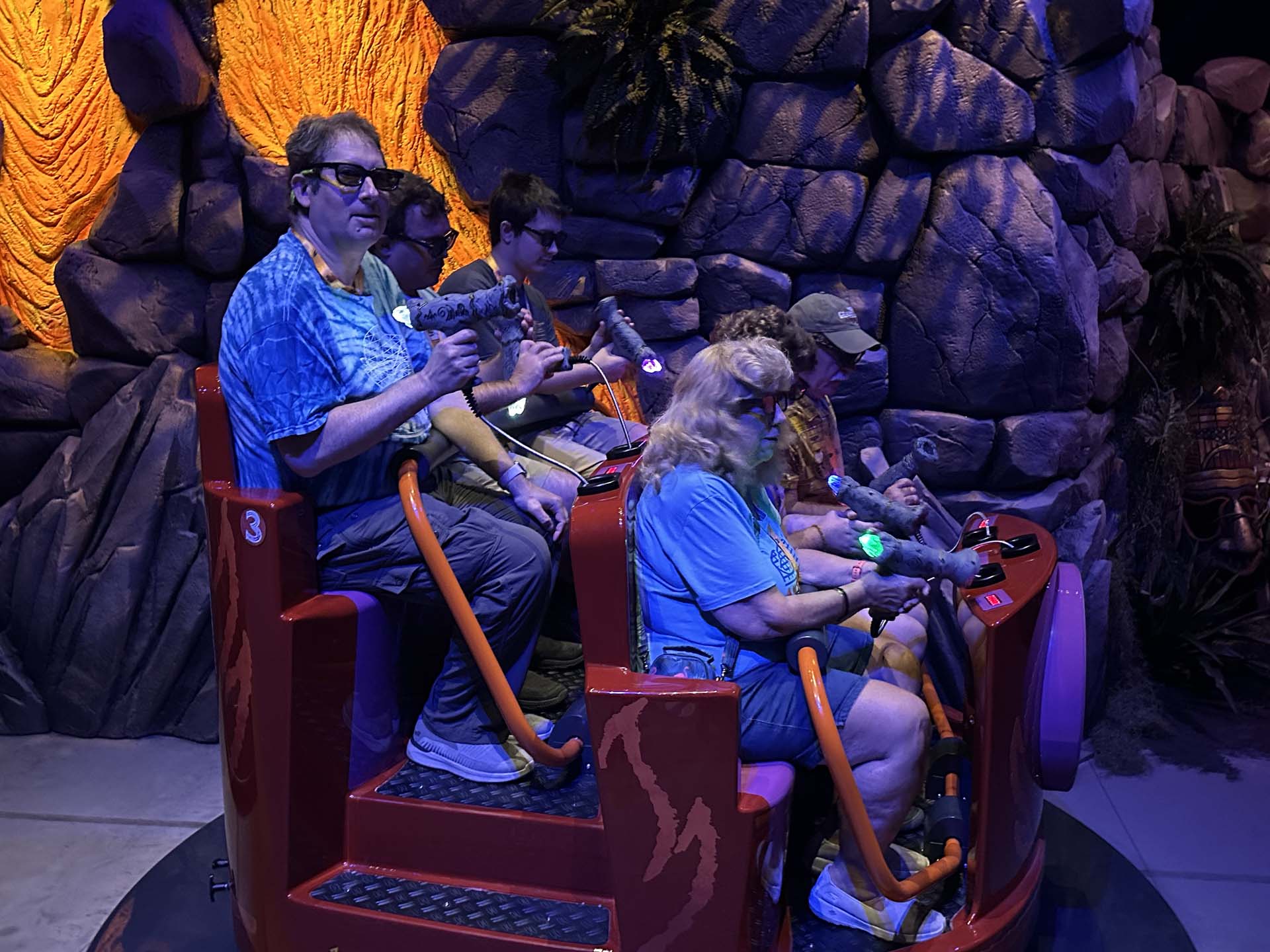 Attendees checked in early on this hot, humid Friday morning, met the owner and his dog, checked out the ACE mini-merchandise table and enjoyed a continental breakfast and a chance to greet friends. There is little shade at Lost Island, but a nice breeze was blowing, which helped cool things off. Early ERT was on Lokolo (SBF Visa wacky worm), Matugani (Intamin Accelerator), Amara Aviators (Gerstlauer Sky Fly), Nopuko Air Coaster (Vekoma suspended looping coaster) and Volkanu: Quest for the Golden Idol, a 4-D interactive dark ride from Sally Dark Rides that won Amusement Today’s Golden Ticket for Best New Family Attraction in 2022.