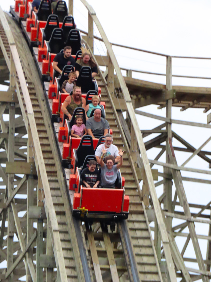 An amazing drone show closed out the official park day for everyone, but afterward, attendees lined up for ERT rides on The Monster, The Outlaw (Custom Coasters International woodie), Tornado, Frantic Freeway (bumper cars) and Storm Chaser (Mondial Windseeker). Snacks were available during ERT, but the focus was on riding. The banked turns on The Outlaw were especially memorable at night, and it is unlikely that anyone will forget the Tornado ride operator’s chatter and how many times he repeated “Tornado.” A great second day!