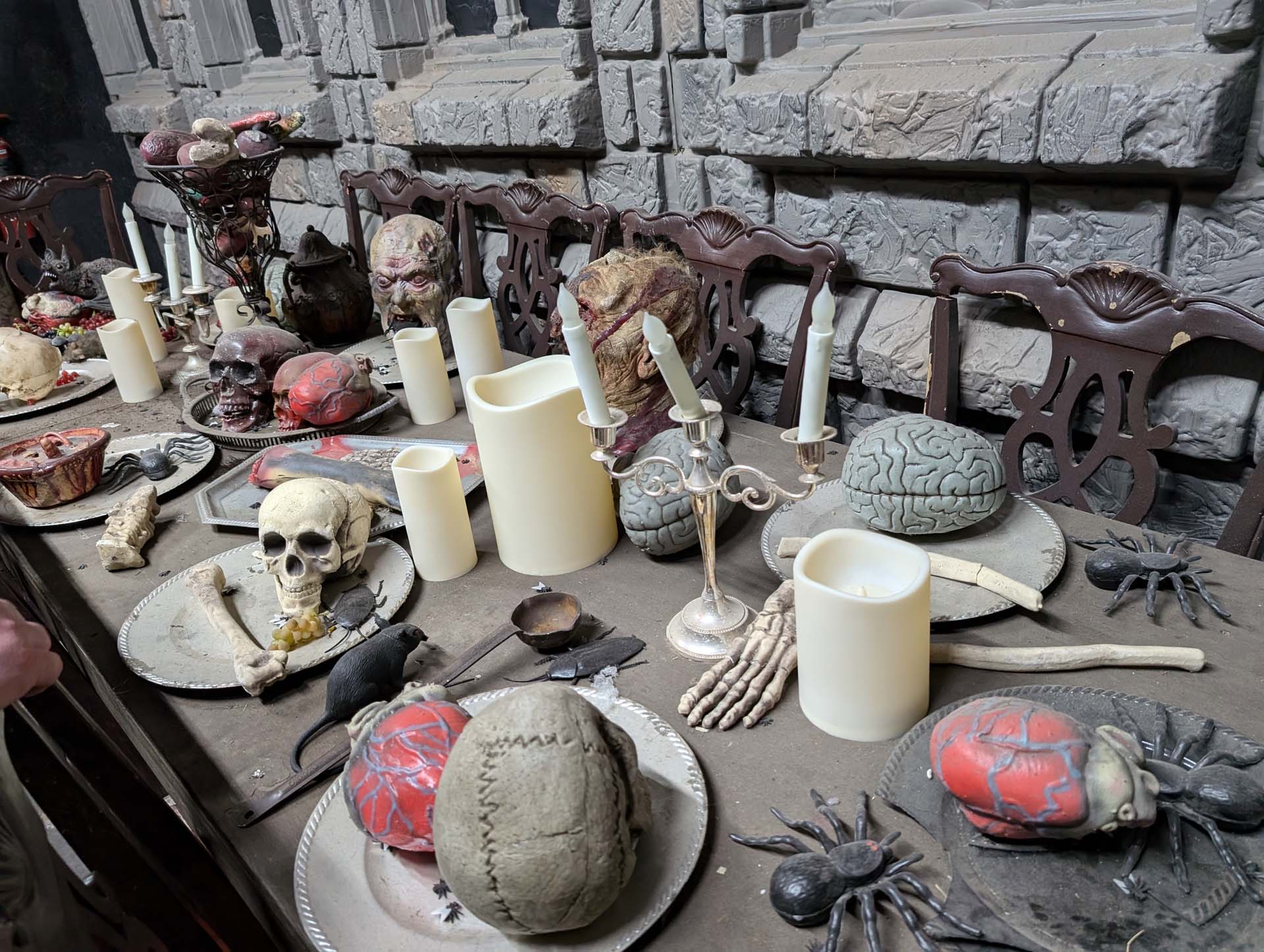 Next was the Lore of the Vampire haunted house walkthrough with lights on. This multilevel indoor/outdoor attraction occupies the former station of Orient Express, an Arrow looper that closed in 2003. The rooms and visual effects are stunning — and effectively creepy. This author was glad the lights were on! BTS experiences for Patriot and Mamba followed in the afternoon and provided excellent photo opportunities to get up close and personal with these coasters.