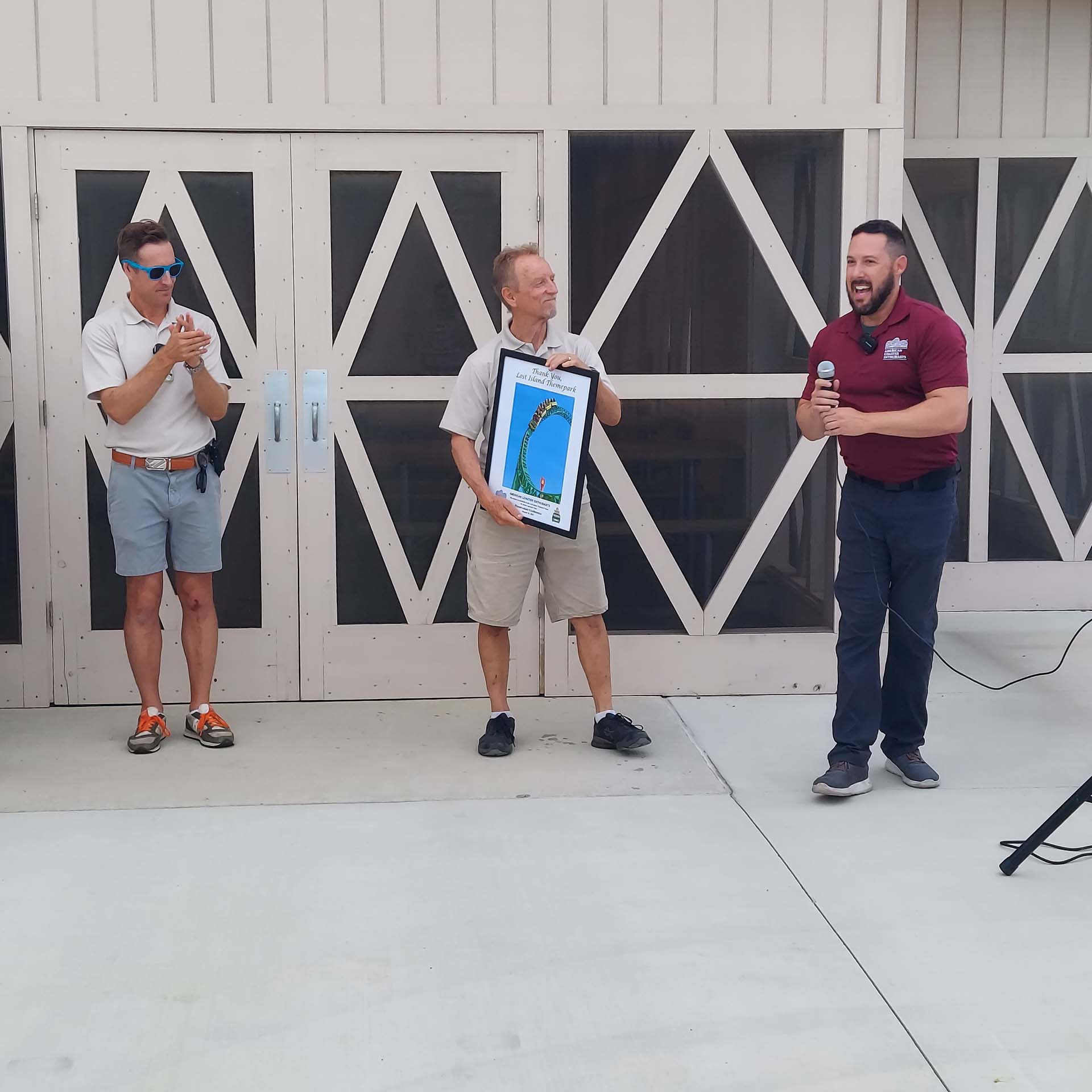 Derek Perry presents Eric Bertch with a token of ACE’s appreciation for the park’s hospitality.