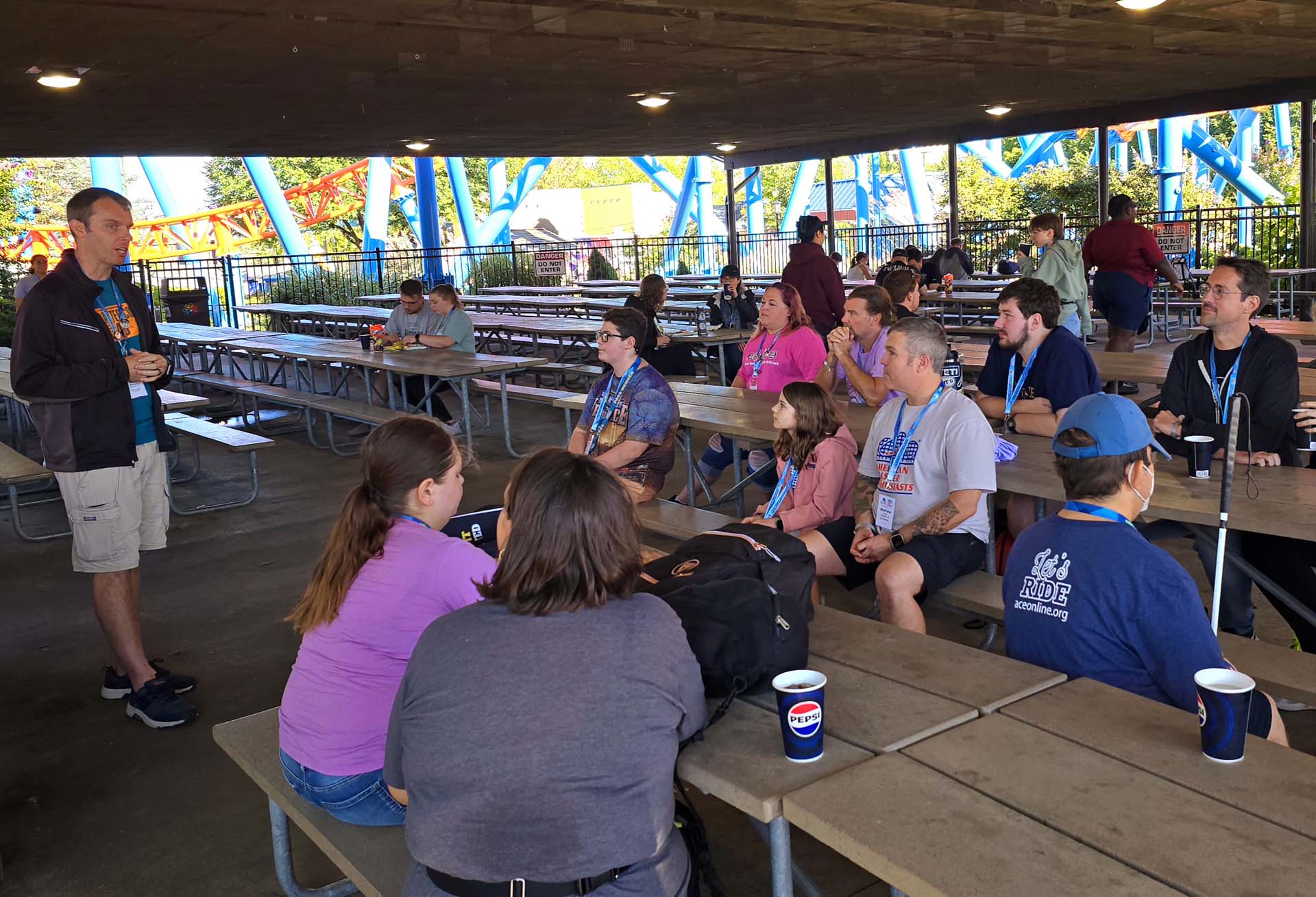 At 3 p.m. the skies cleared, the sun came out and dinner was served in the Tidal Force catering area. The meal included chicken bites, vegetable fried rice, bratwurst, meatball sandwiches, mixed green salad, watermelon and plenty of ice cream selections. ACE Eastern Pennsylvania Regional Representative Mike Matscherz made a few announcements and gave instructions about the behind-the-scenes tour of Wildcat’s Revenge.