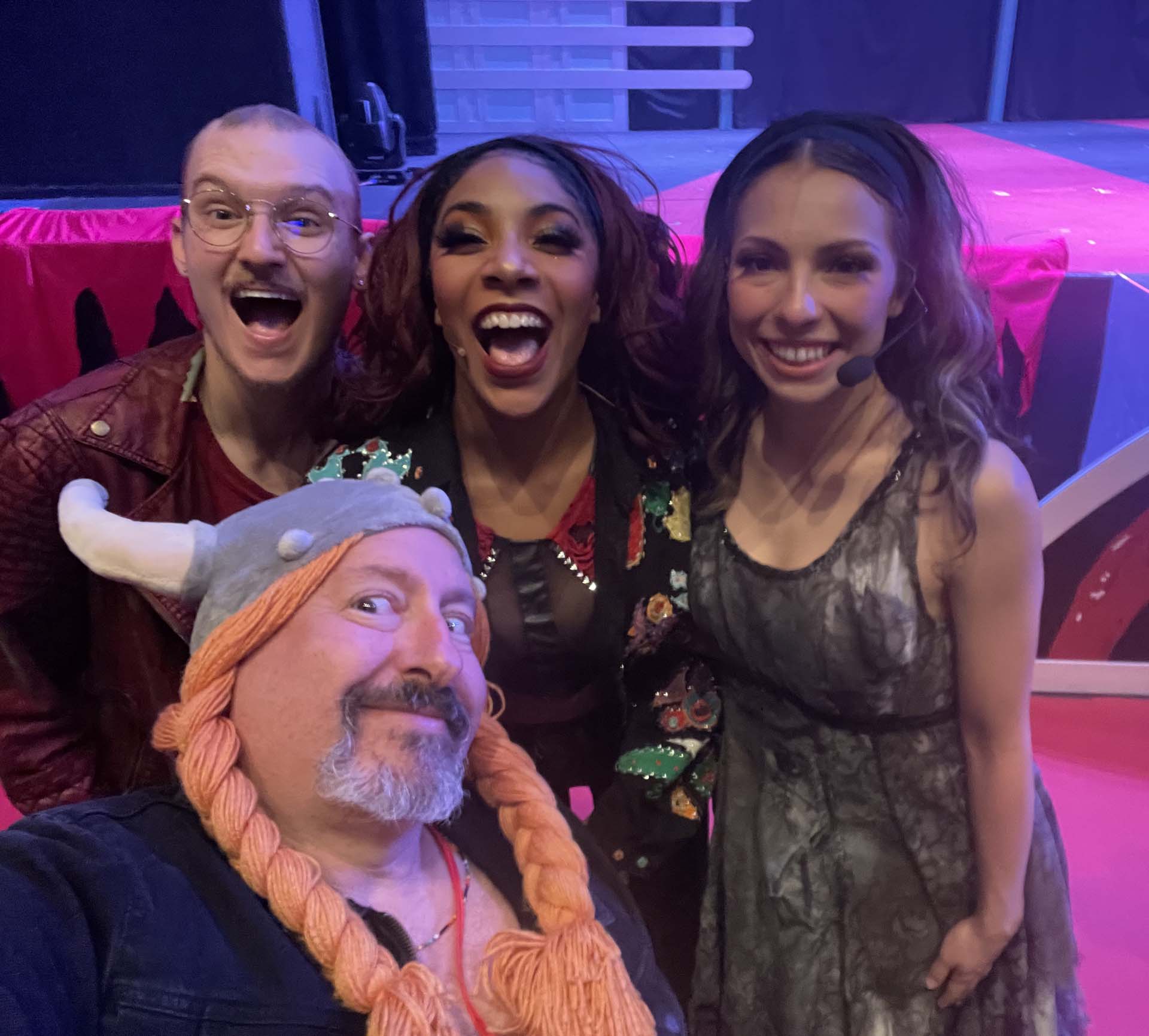 Reserved seating took place at four of the park’s shows, the first being “Haunted Hollywood” in the Zaragoza Theater. A great cast, great concept and a solid performance complemented the air-conditioning. (It was unusually warm for October.) Following the show, attendees went up on stage for a group photo and then got to interact with and meet the performers.
