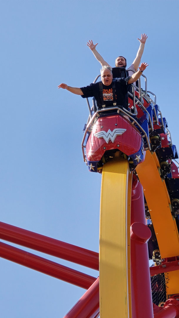 Attendees enjoyed a first ride of the day on Wonder Woman Golden Lasso Coaster. This was the first opportunity for most enthusiasts to experience the new second-generation trains on the original Rocky Mountain Construction single-rail coaster. The restraints had a little more give, making it easier on the shoulders, but make no mistake, she’s still powerfully fierce!